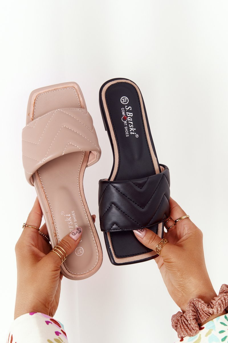 Leather Slippers With Quilting S.Barski 331-42 Cappuccino