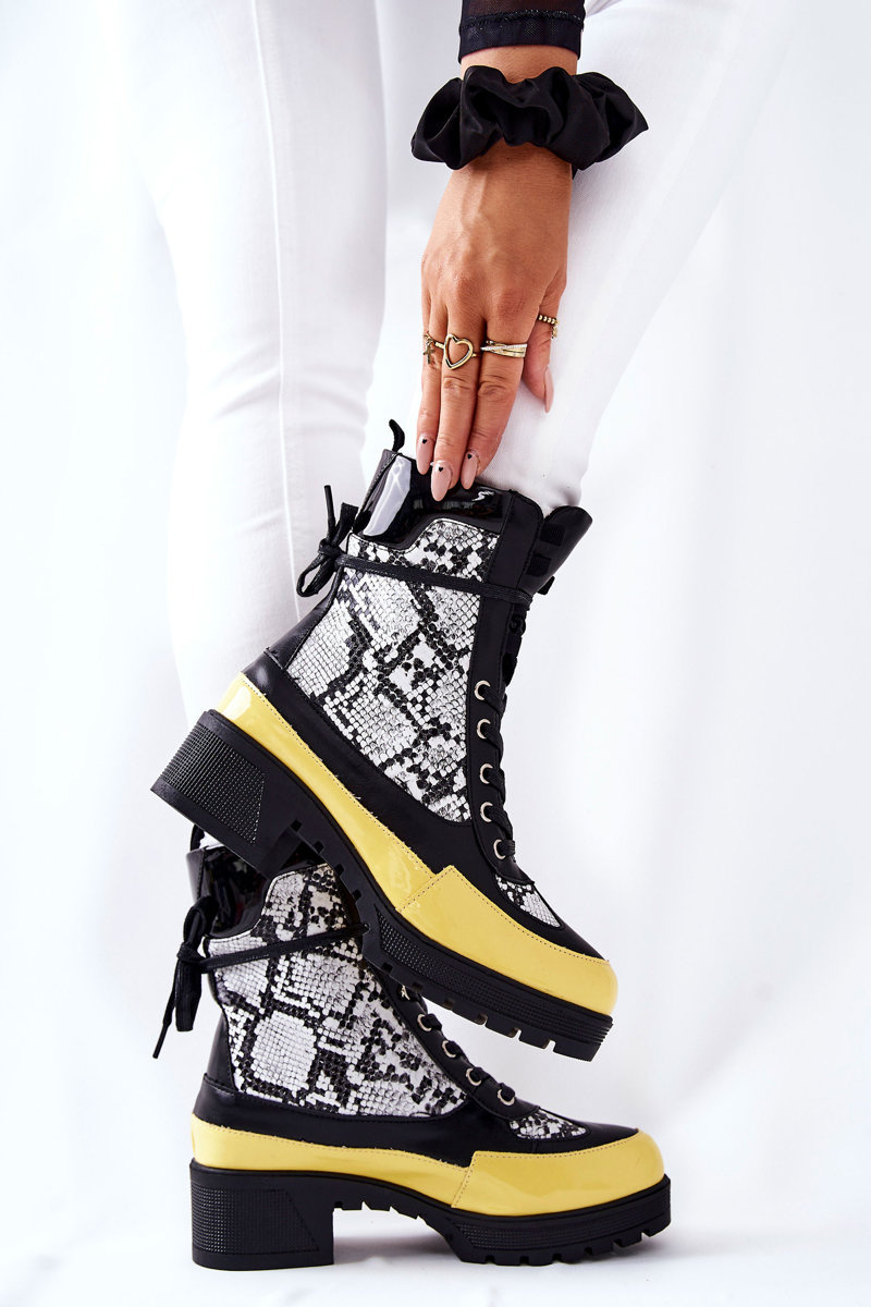 Leather Snakeskin Boots Black and Yellow Meridiah