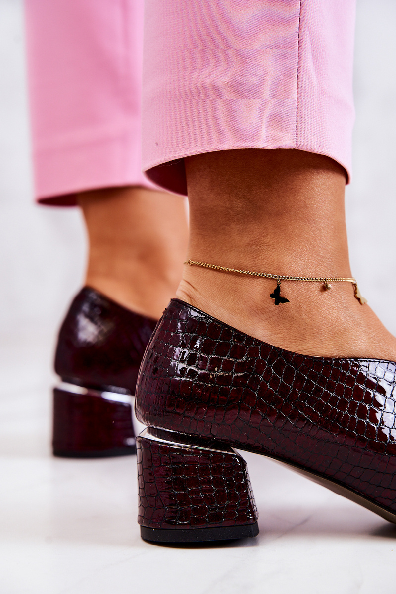 Shoes made of high-quality natural leather. They have a soft, leather insole. The heel is finished with a decorative element. Pointed toe. Elegant pumps perfect for many styles. Thanks to the stable heel, they are very comfortable to wear for many hours. Check also other models of pumps! When choosing a size, please use the size chart.