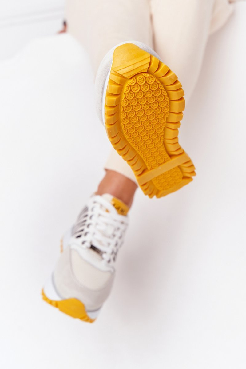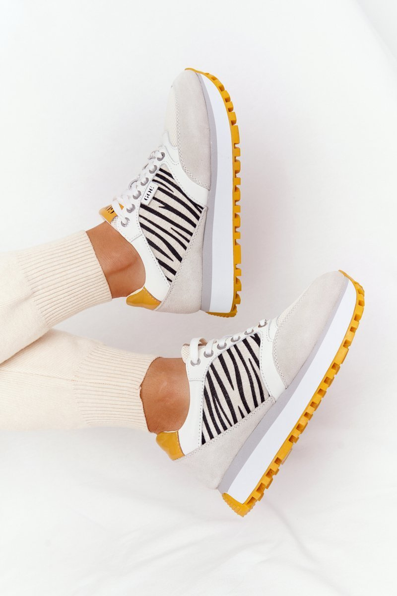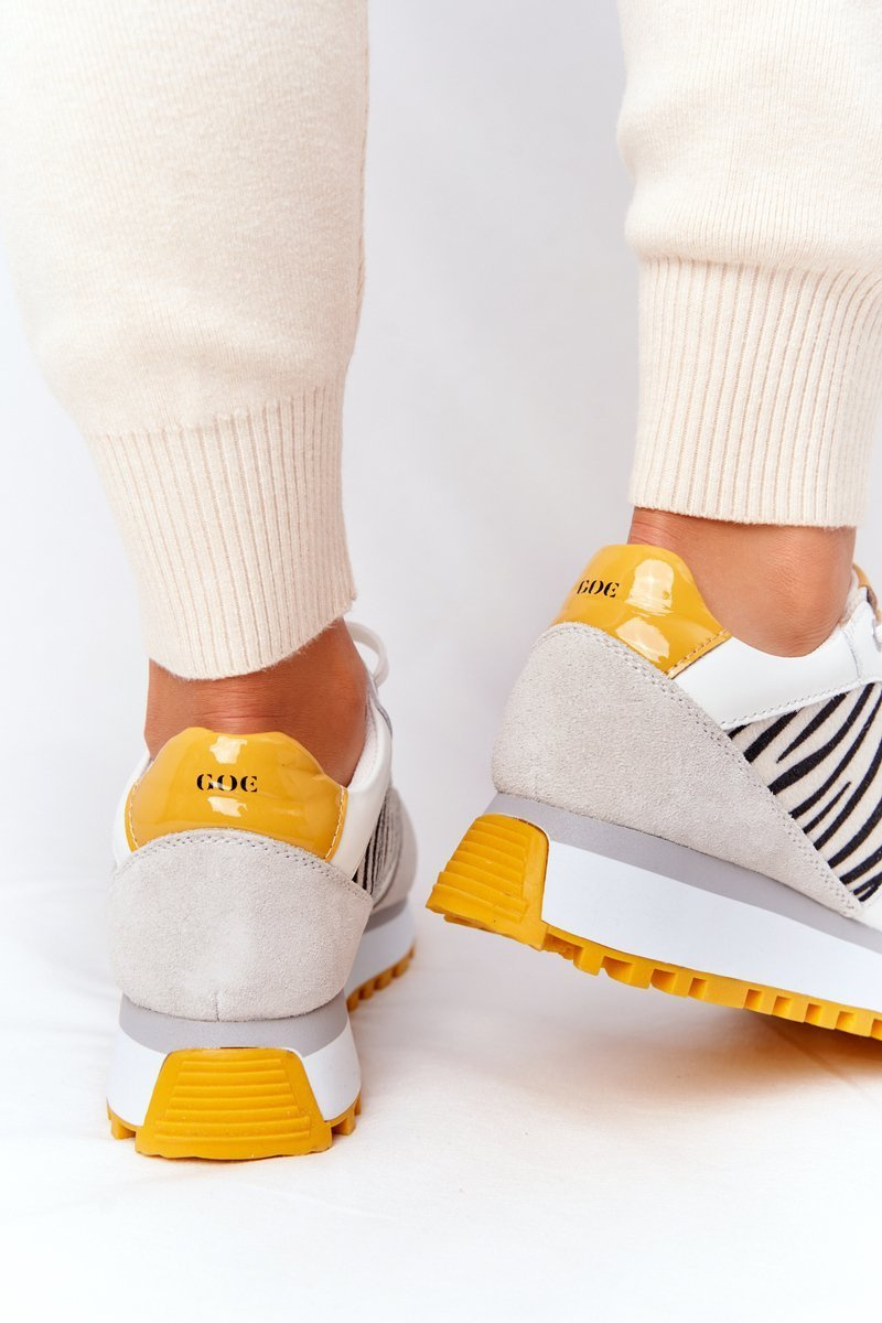 Leather Sport Shoes On A Platform GOE HH2N4001 White-Yellow