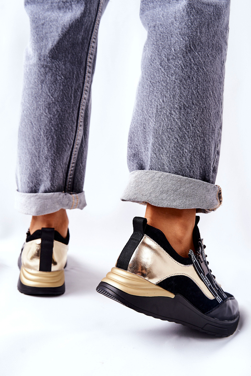 Leather Sport Shoes Sneakers Black and Gold Minor