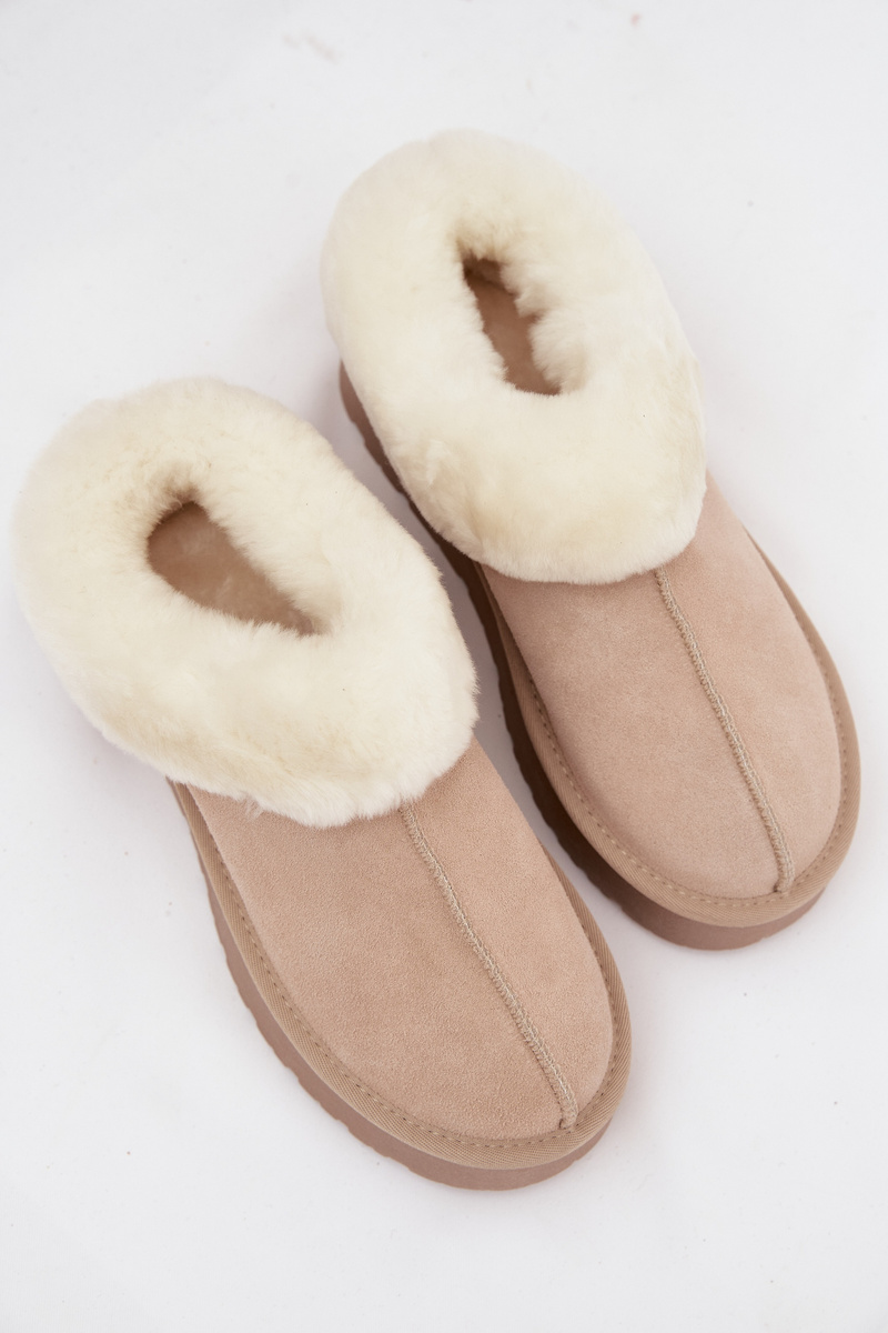 Leather Suede Snow Boots Women with Fur Beige Mivelle