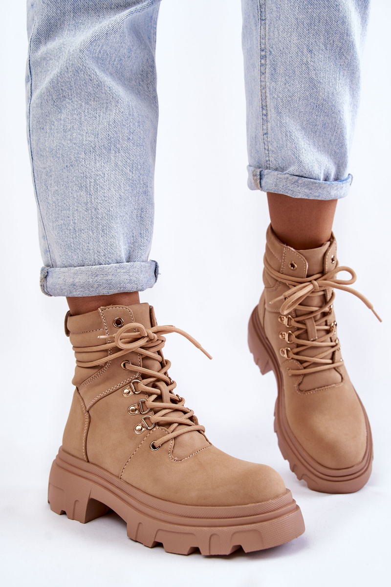 Classic women's boots have lacing. The model is made of eco leather. In addition, these boots have a stiffened heel. They are mounted on a massive, flat heel with grooves. Upper with stitching. Rounded, stiff toe. These boots will work in many styles, so you should have them in your wardrobe! When choosing a size, please use the size chart.