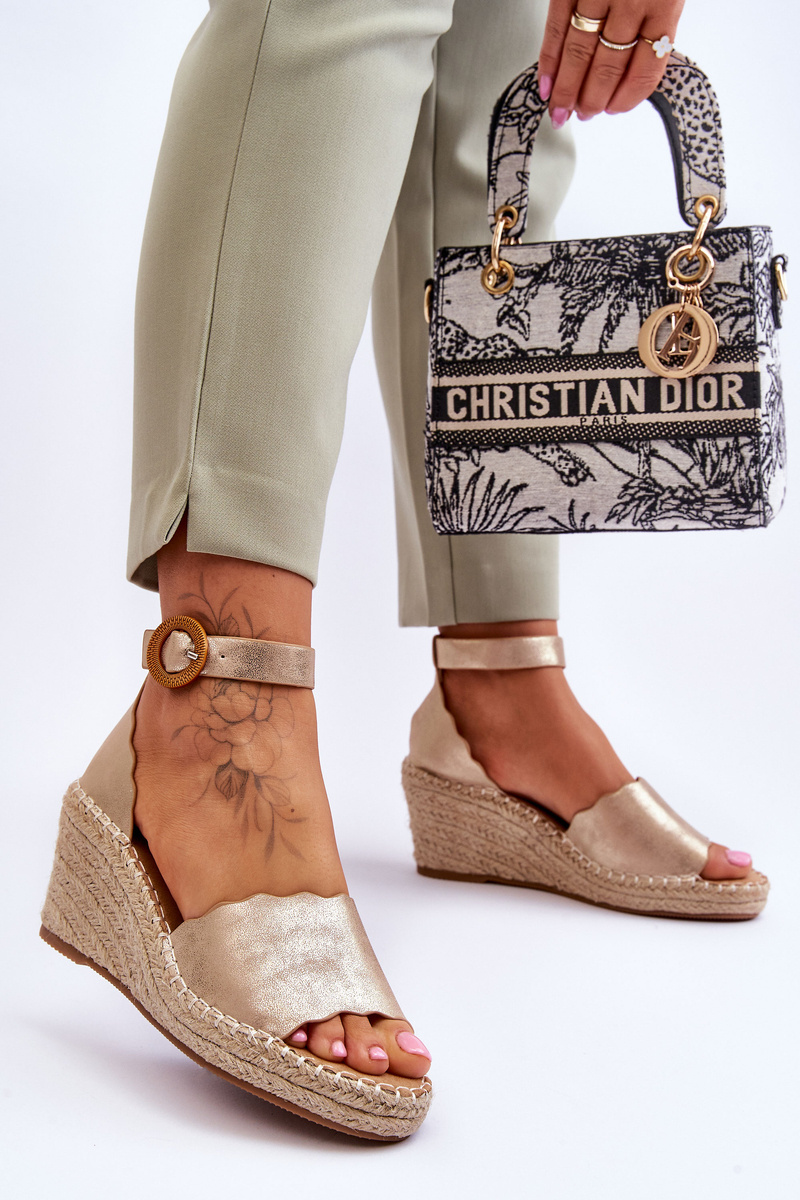 Leather Wedge Sandals Comfort Shoe Golden Verola