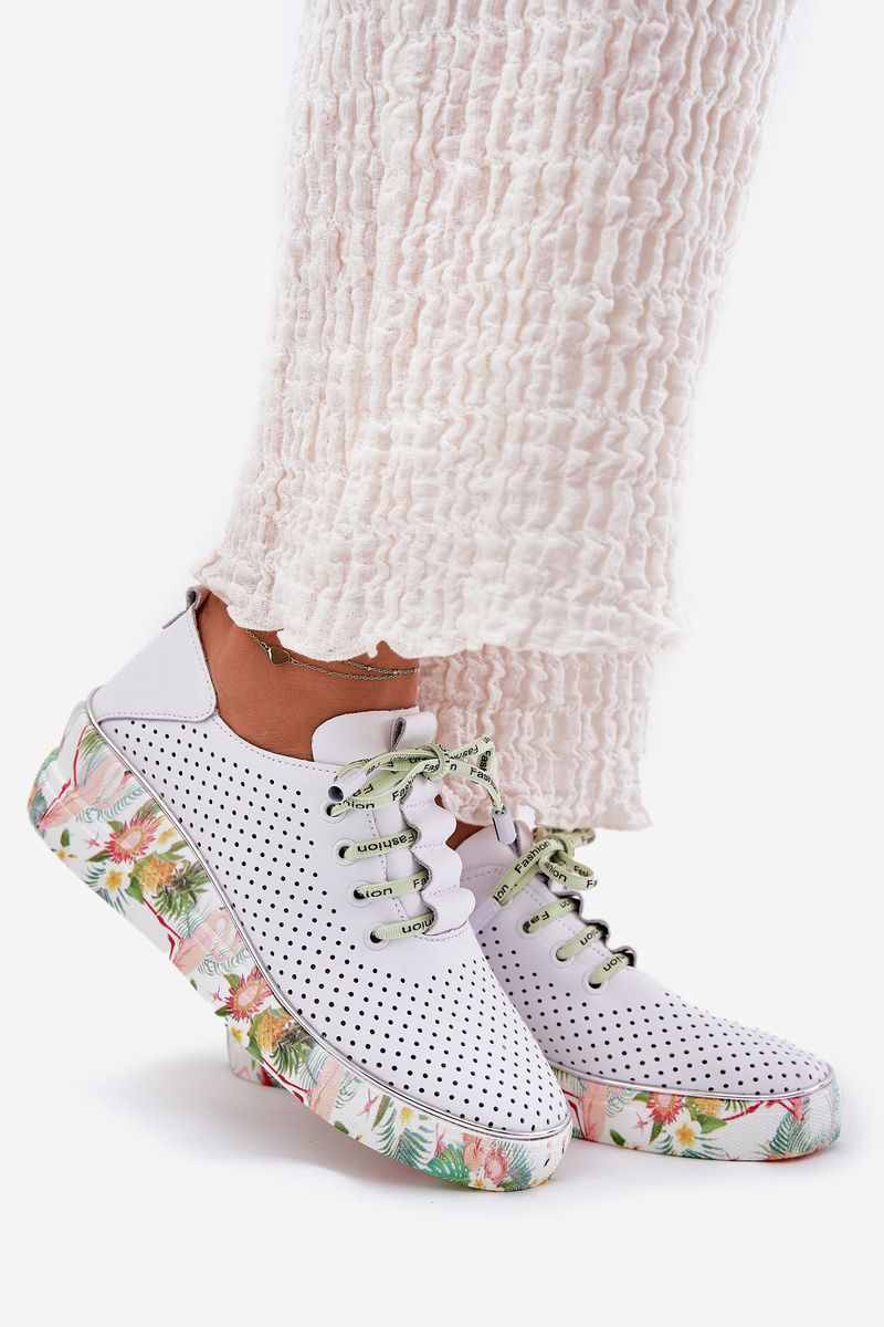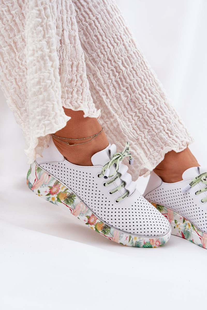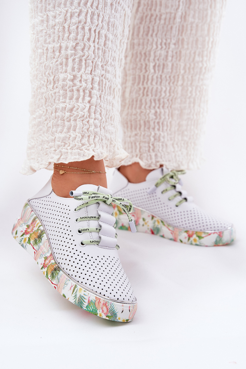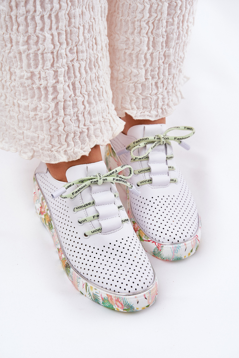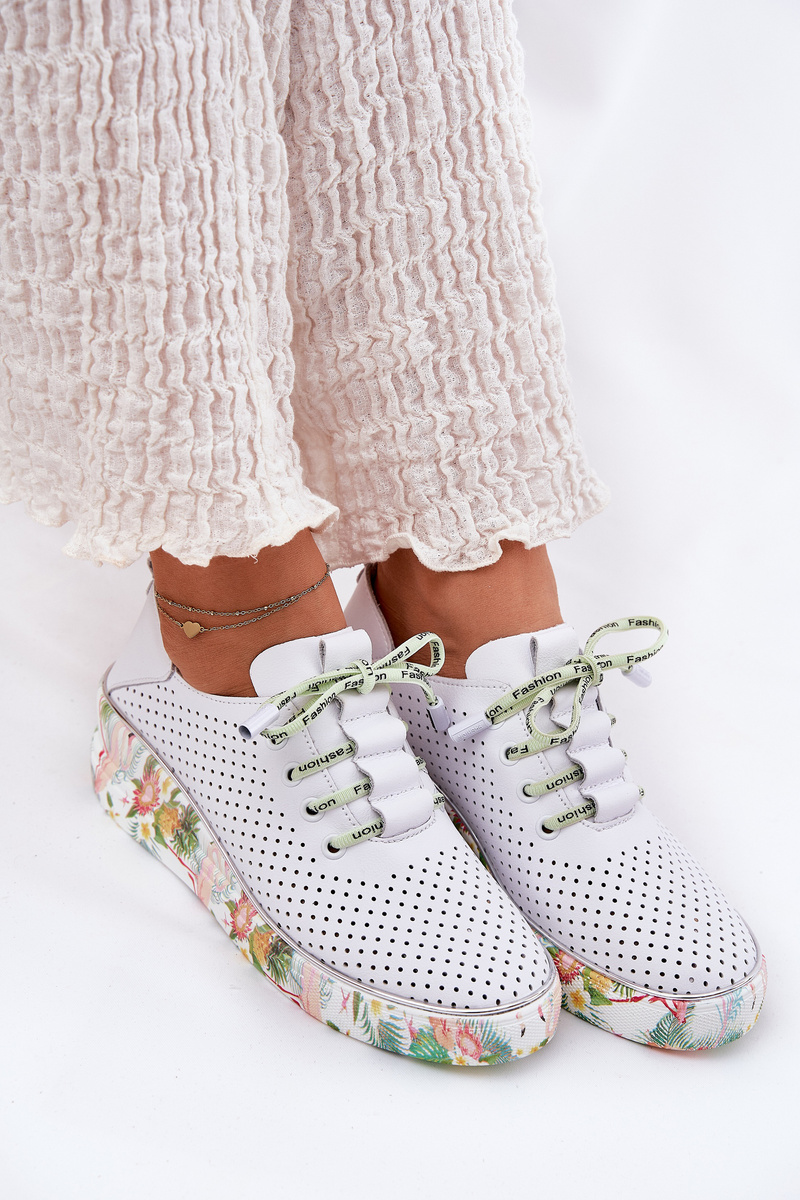 Leather Wedge Shoes With Pattern Artiker 54C1807 White-Green