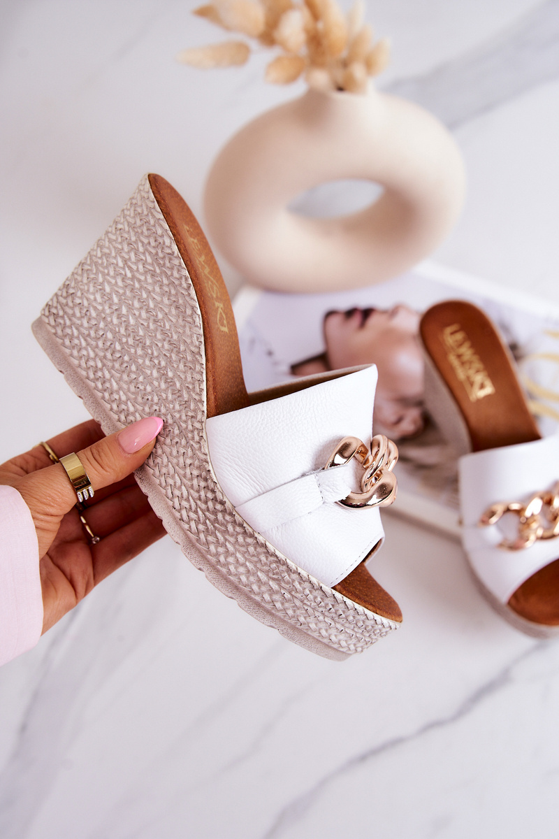 Leather wedge slippers Lewski 3062 White