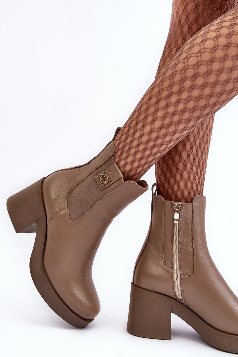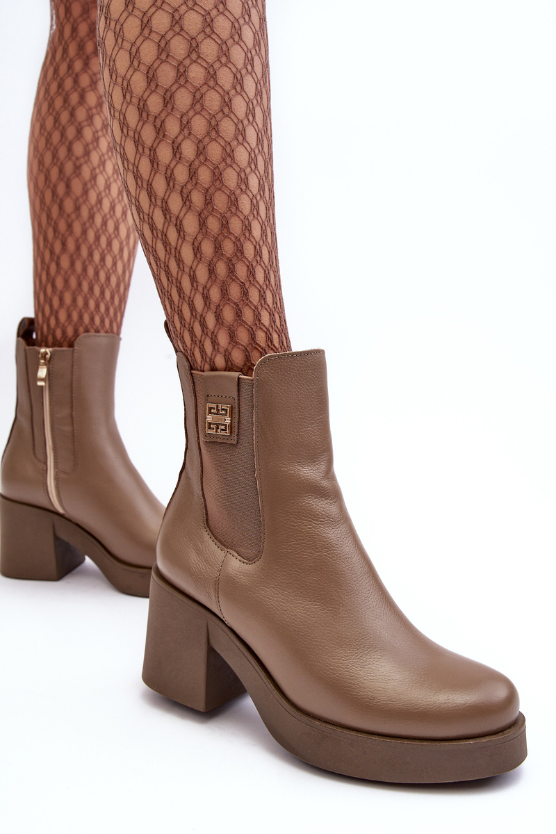 Leather Women's Boots on Heel Lemar Brown Kodra