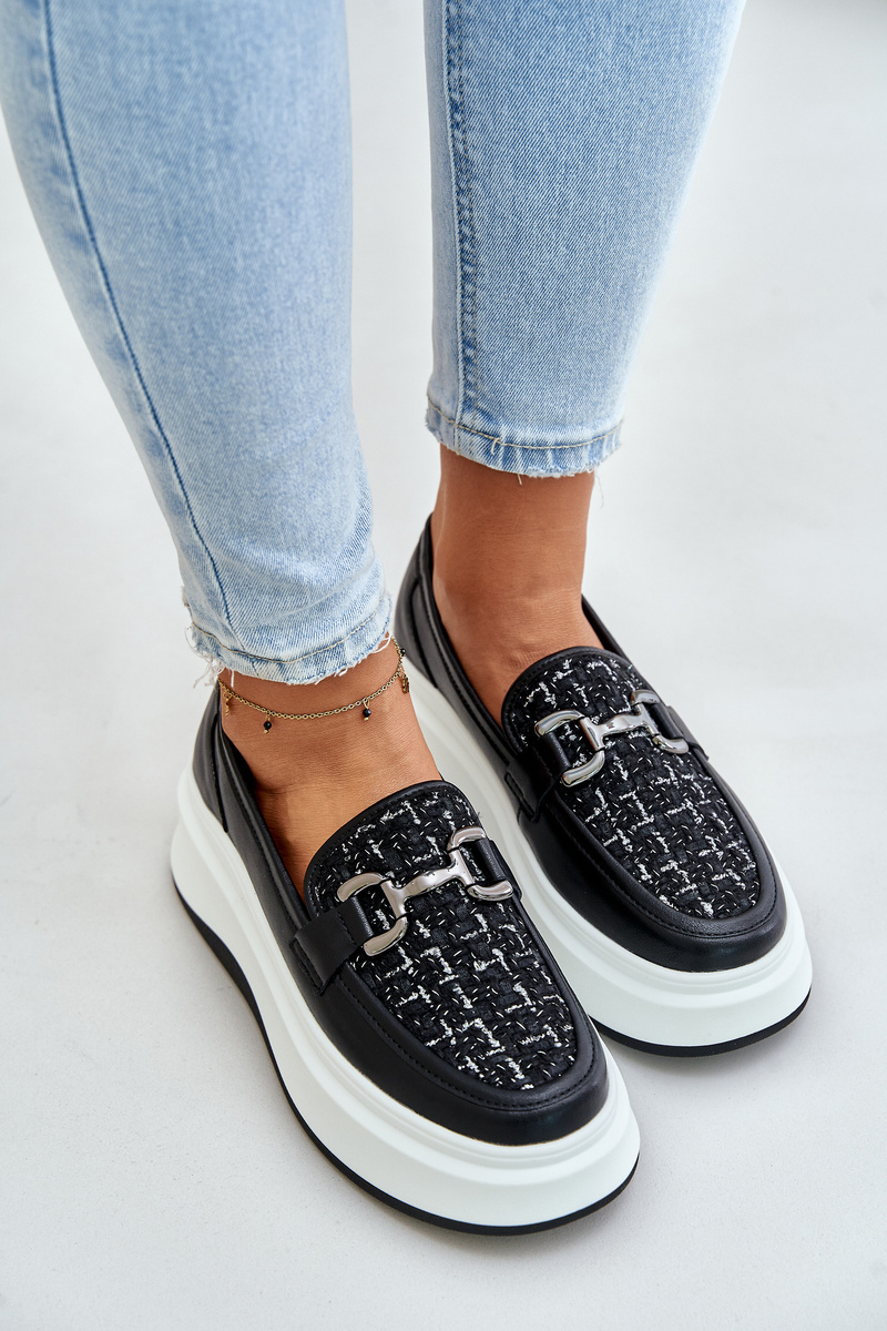 Elegant women's loafers made of natural leather are the perfect choice for women who appreciate classic style with a modern touch. Set on a platform. The front of the shoe features an ornament that adds a unique character. Rounded toes. Perfect for both casual and more formal outfits. When choosing a size, please refer to the size chart.