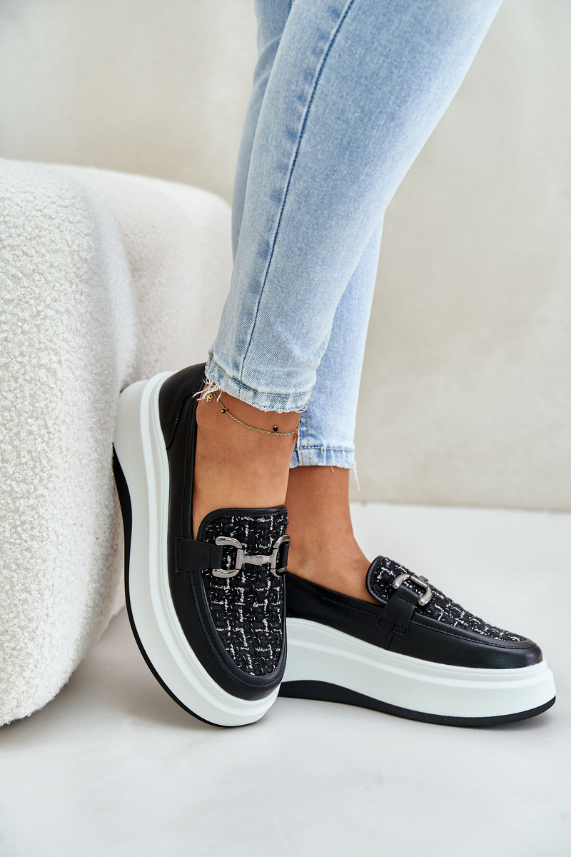 Leather Women's Moccasins On Platform With Decoration Black Vinceza 89105
