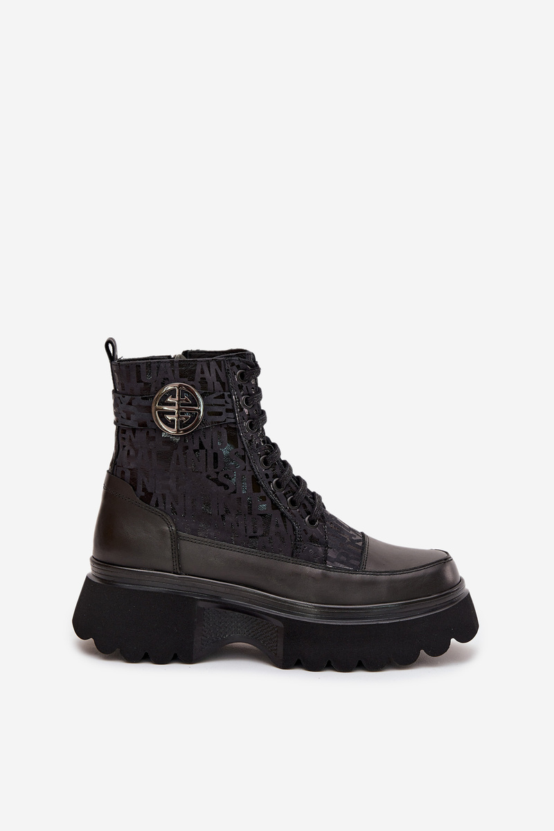 Women's ankle boots by Artiker are stylish footwear designed for colder days. Made from natural leather, they stand out for durability and a fashionable appearance. Positioned on a stable platform, they provide comfort and a modern look. The model features both laces and a practical zipper, making it easy to put on and fit to the foot. The upper is decorated with trendy inscriptions and a strap with a decorative detail. The interior is insulated, making them ideal for the fall-winter season. Please refer to the size chart when choosing your size. When choosing a size, please refer to the size chart.