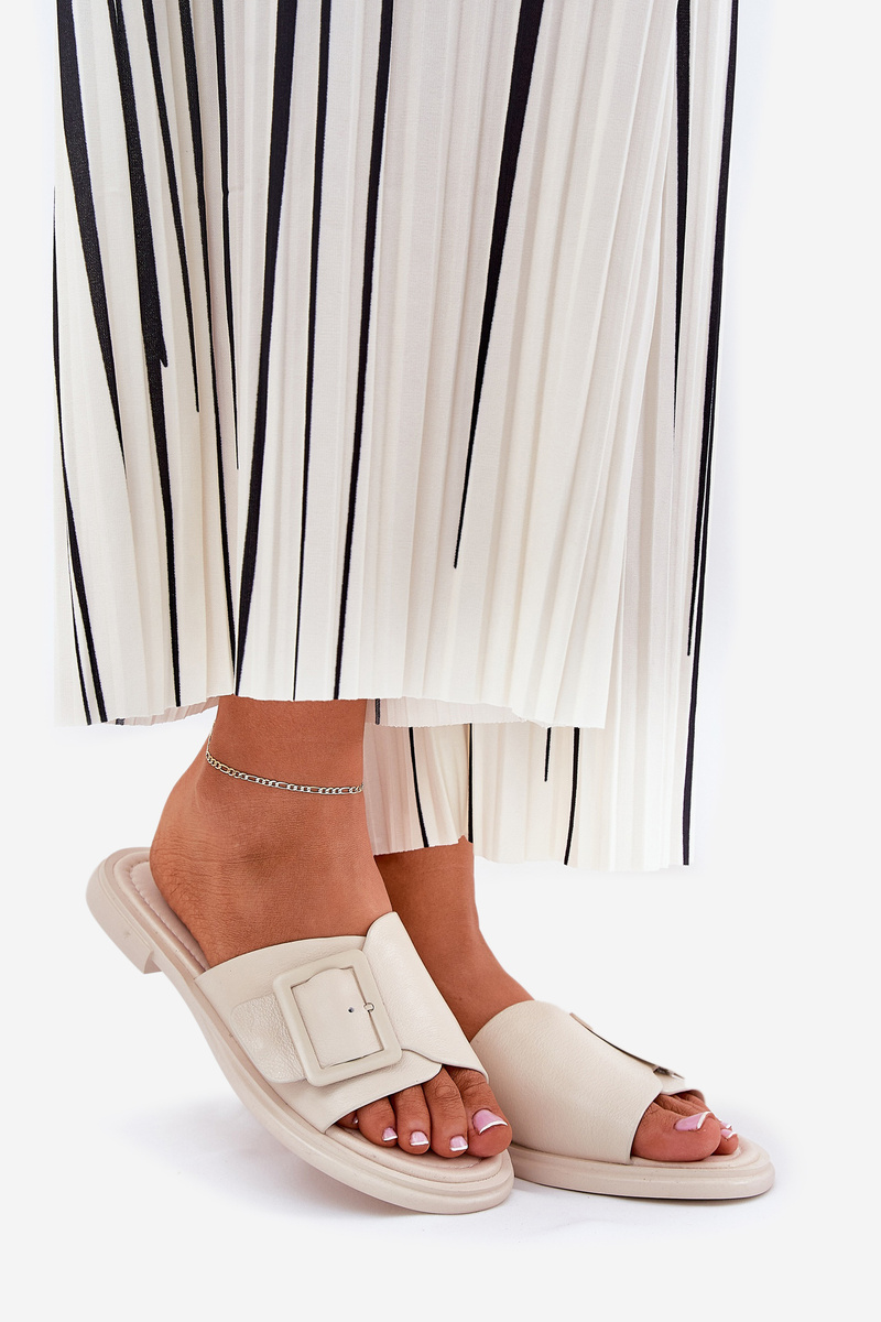 Leather Women's Slippers With Buckle D&A Beige SJ2302-01