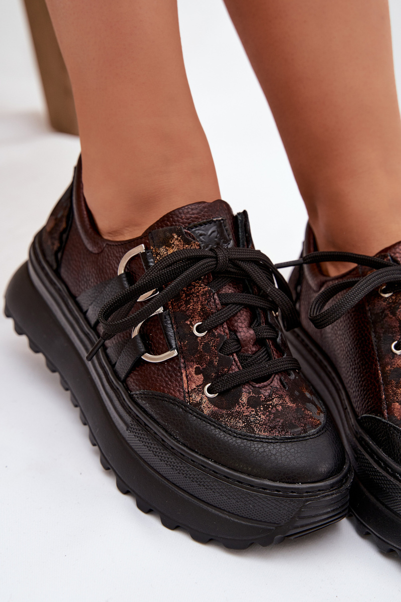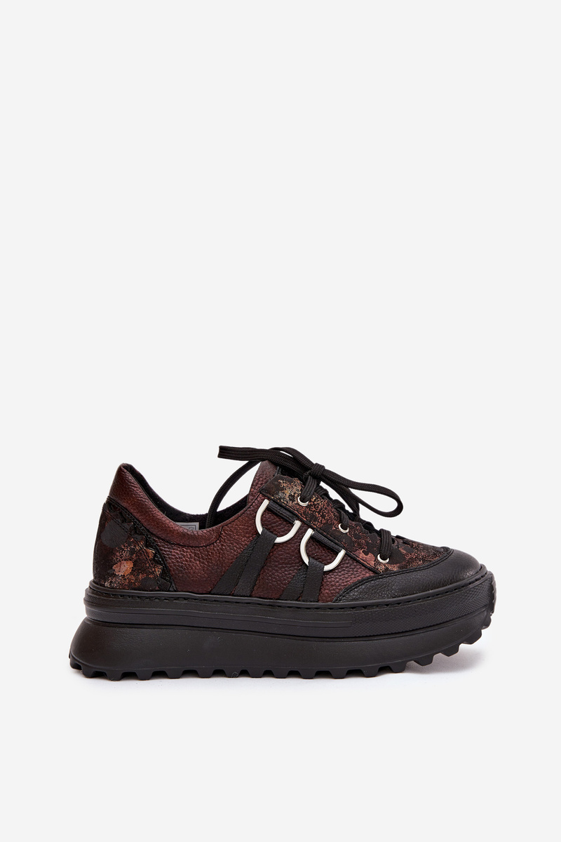 Leather Women's Sneakers on Platform Maciejka 06562-25 Chocolate
