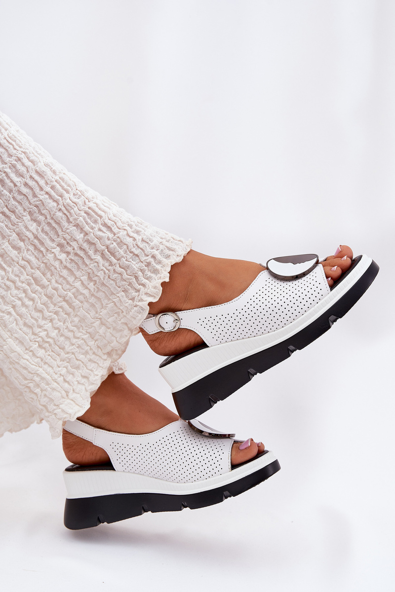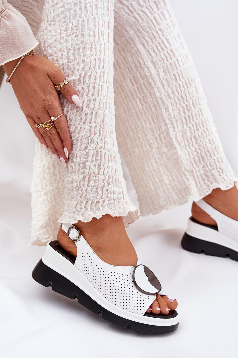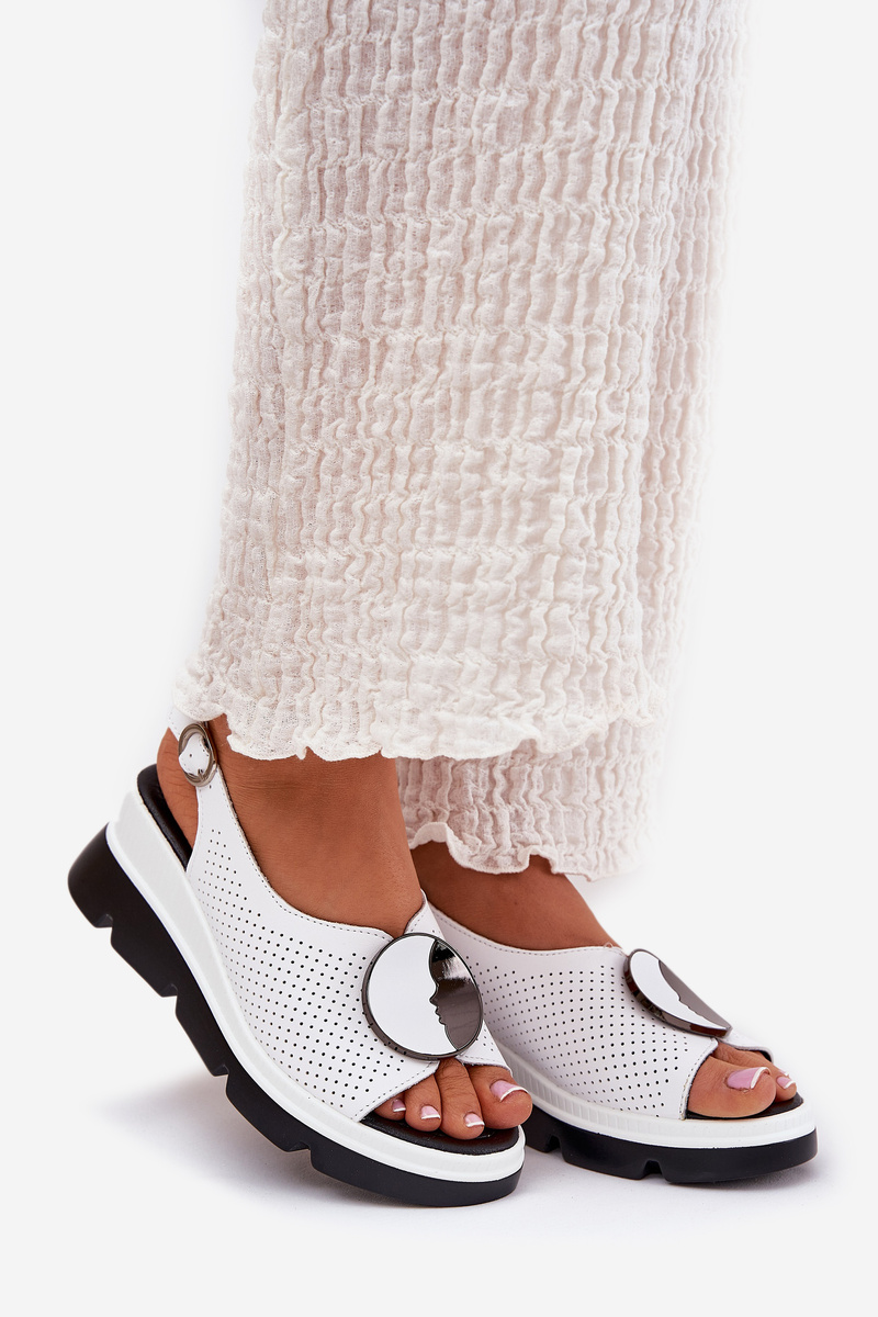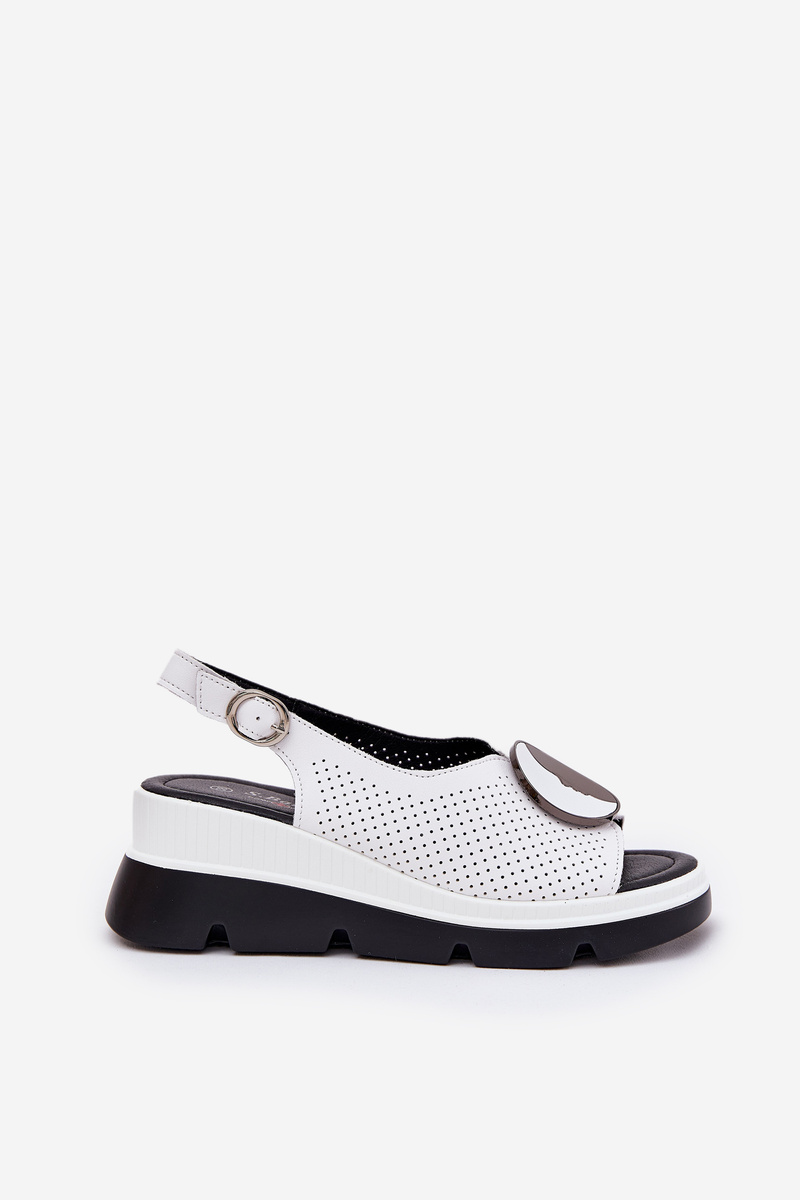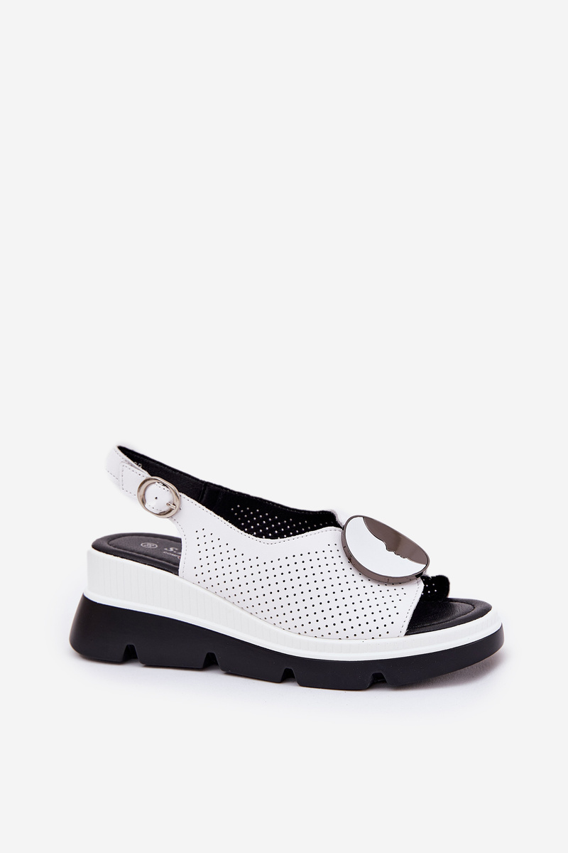 Leather Women's Wedge Sandals With Decoration S.Barski LR51-788 White