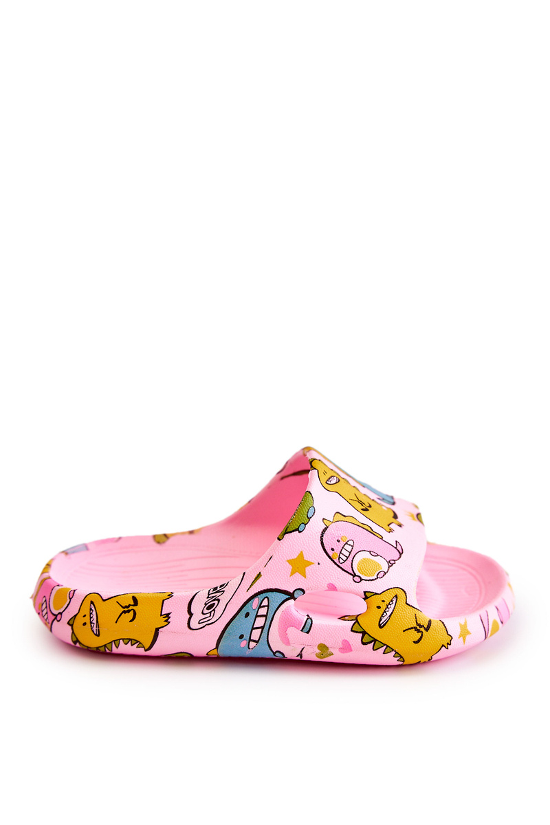 Children's flip-flops with a motif are made of foam material. This model has an open, rounded toe. Profiled insert. The flip-flops are mounted on a delicate platform. Classic, slip-on model. Extremely light and comfortable model. Your child will surely be satisfied with these flip-flops! When choosing a size, please use the size chart.