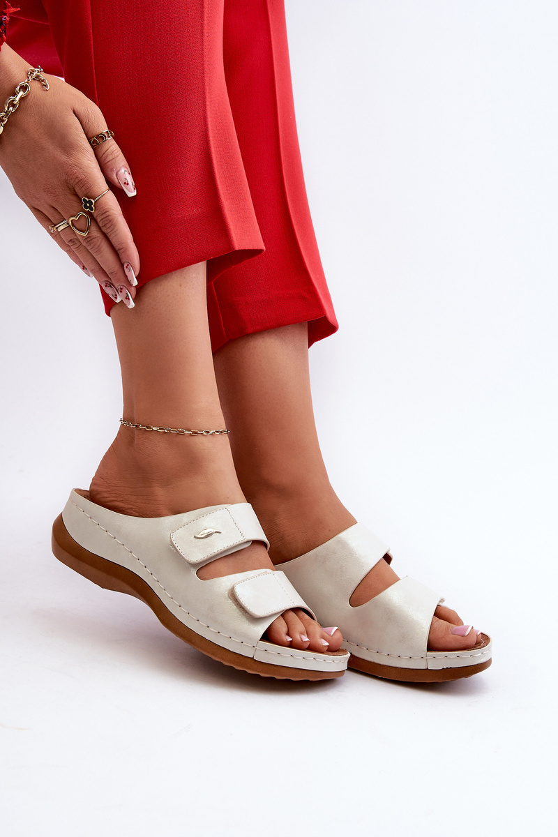 Women's wedge sandals made of eco leather. Set on a wedge heel. This model has a comfortable insole with a cushion effect. Adjustment with double Velcro. An extremely comfortable model that you should have in your summer wardrobe! When choosing a size, please refer to the size chart.