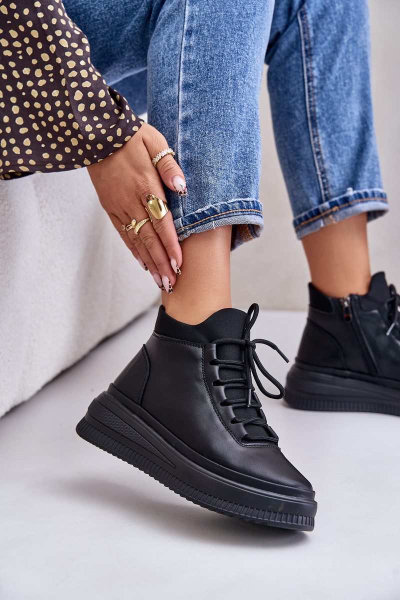 Sporty shoes made of high-quality natural leather that combine style with comfort. Set on a trendy platform that adds character and highlights modern design. The model features a zip closure, and additional lacing allows for a perfect fit to the foot. Rounded toes give the whole a subtle look. These shoes are a must-have for any woman who values both fashionable appearance and comfort. When choosing a size, please refer to the size chart.