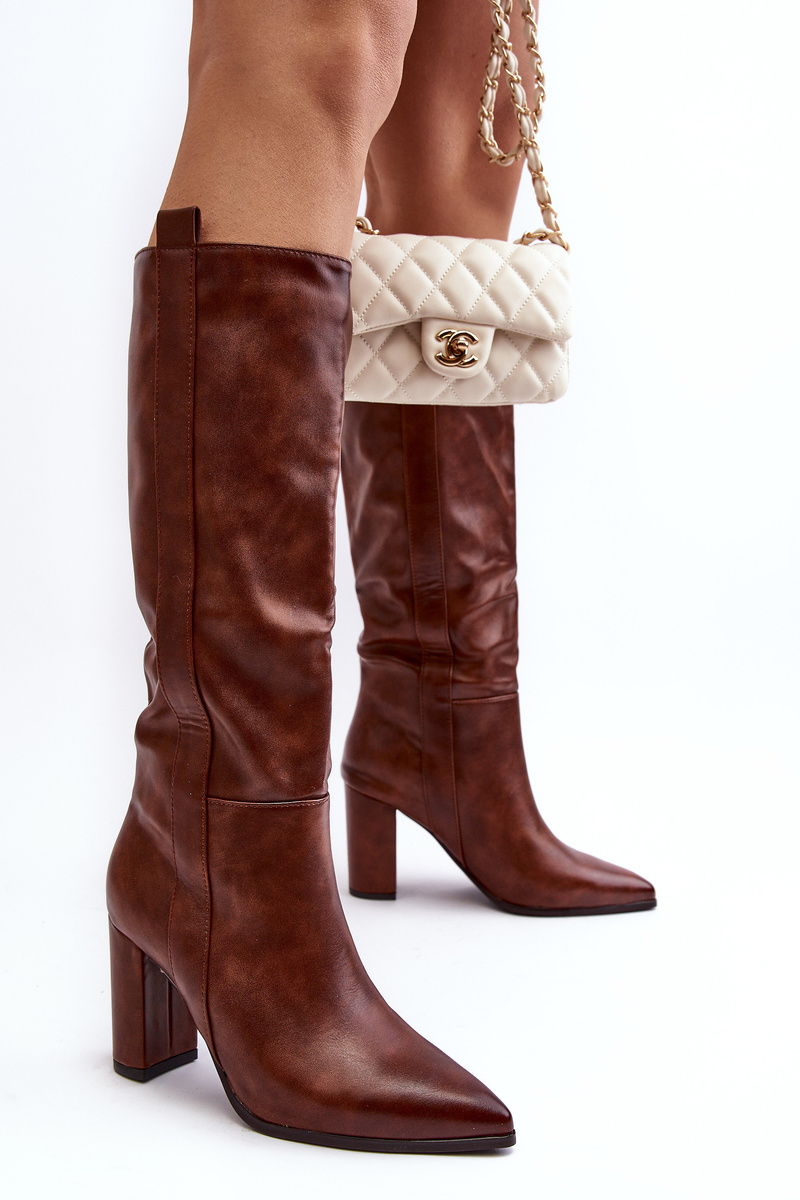 Lined Women's Over-the-Knee Boots with Block Heel Brown Genzani