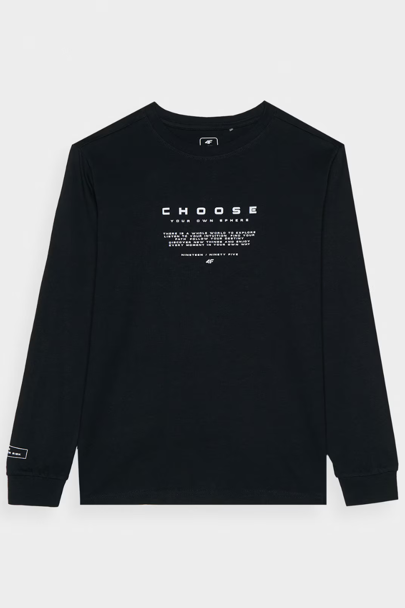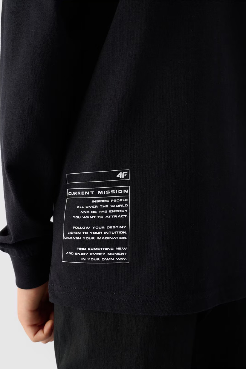 Long Sleeve T-Shirt For Boy With Print Regular 4F 4FJWAW24TLONM294-20S Black