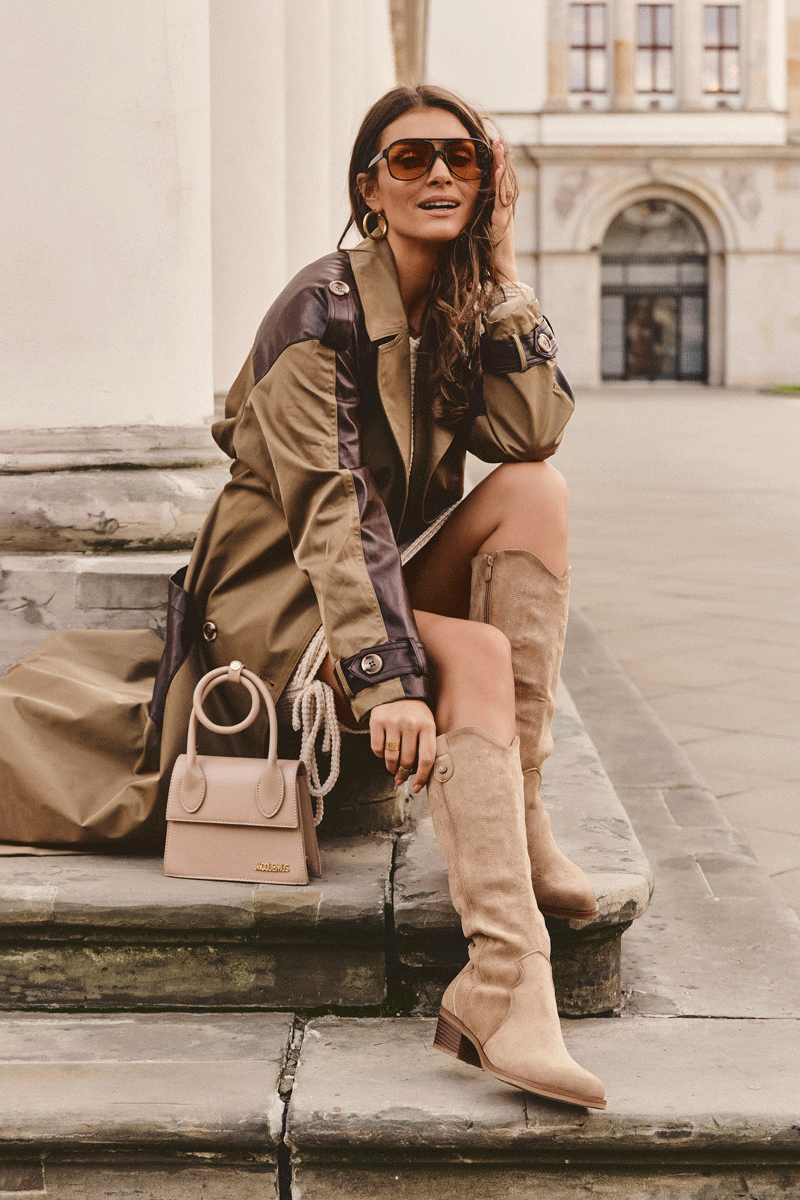 This model will steal the heart of every cowboy boots lover! Perfect for autumn styling! The model is made of soft eco suede with delicate stitches on the shaft. The boots are fastened with a zipper. Set on a low, stable heel. Insulated inside with a shoe blanket. The pointed toe will optically slim the legs. These boots have a reinforced toe box. When choosing a size, please refer to the size chart.