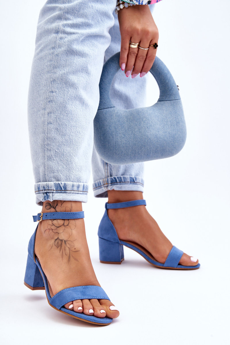 Unique sandals with a low heel in the form of a stable post. Made of pleasant to the touch eco suede. These sandals have a stiffened heel. The insole made of eco leather will ensure comfortable use. Open nose, rounded. Fastened around the ankle with an adjustable strap with a buckle. You will definitely use them in many situations! When choosing a size, please refer to the size chart.