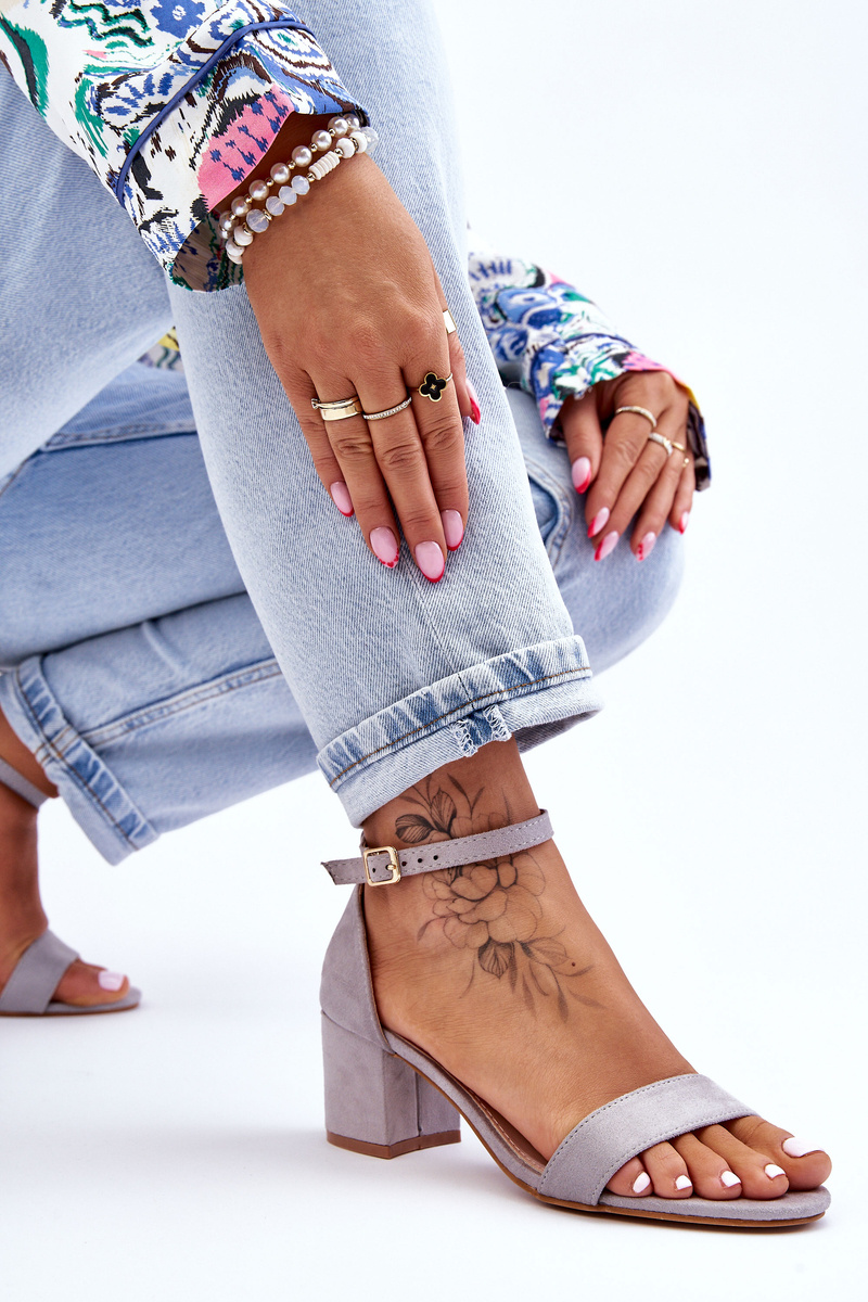 Unique sandals with a low heel in the form of a stable post. Made of pleasant to the touch eco suede. These sandals have a stiffened heel. The insole made of eco leather will ensure comfortable use. Open nose, rounded. Fastened around the ankle with an adjustable strap with a buckle. You will definitely use them in many situations! When choosing a size, please refer to the size chart.