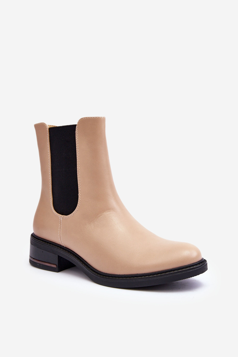 Classic women's ankle boots. Set on a flat, stable heel. Model made of eco leather. Perfect for autumn outfits! When choosing a size, please refer to the size chart.