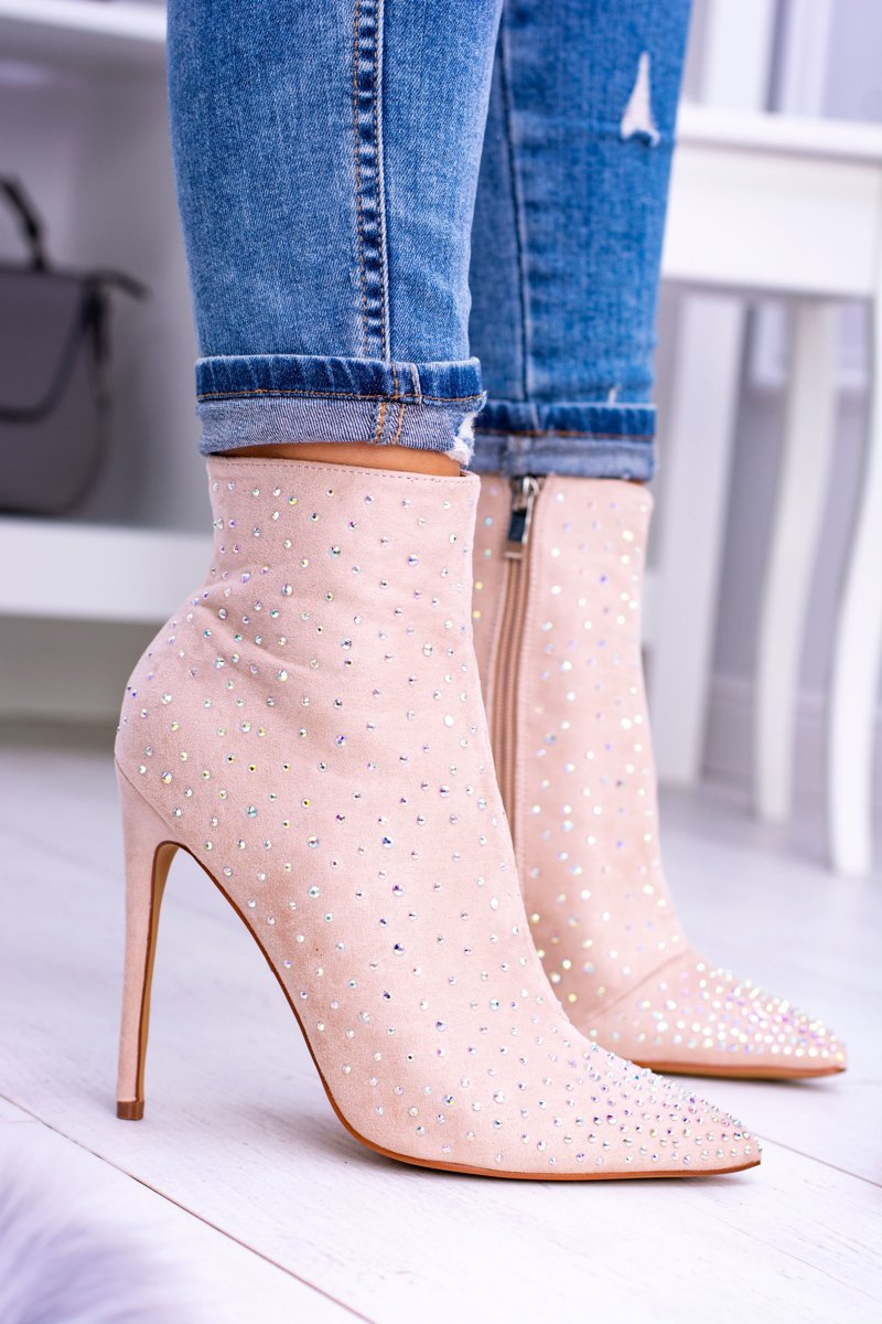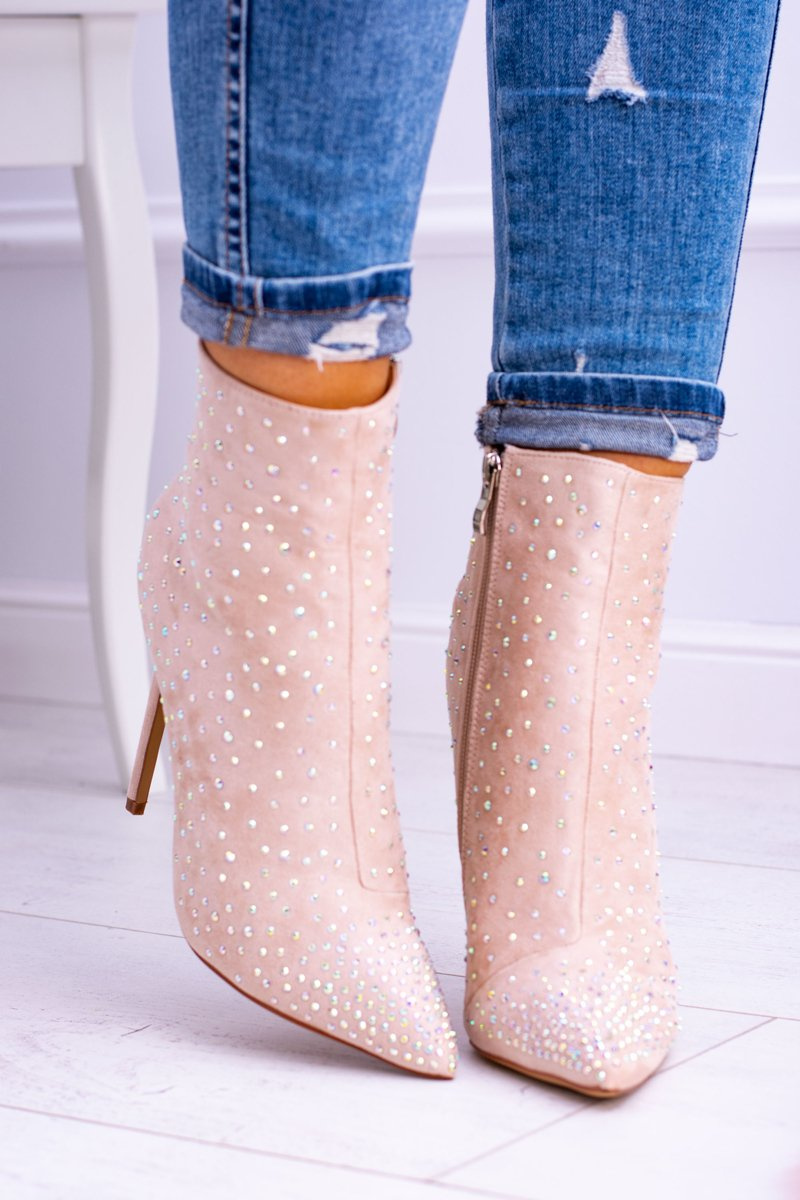 High boots do not have to be big and heavy. Our proposal is an elegant suede stiletto boots, which will complement autumn styling. The boots are extremely comfortable. They will work well for elegant styling. Additional decoration are zircons on the entire surface of the shoe. Do not wait any longer and buy now! When choosing the size, please follow the size chart.