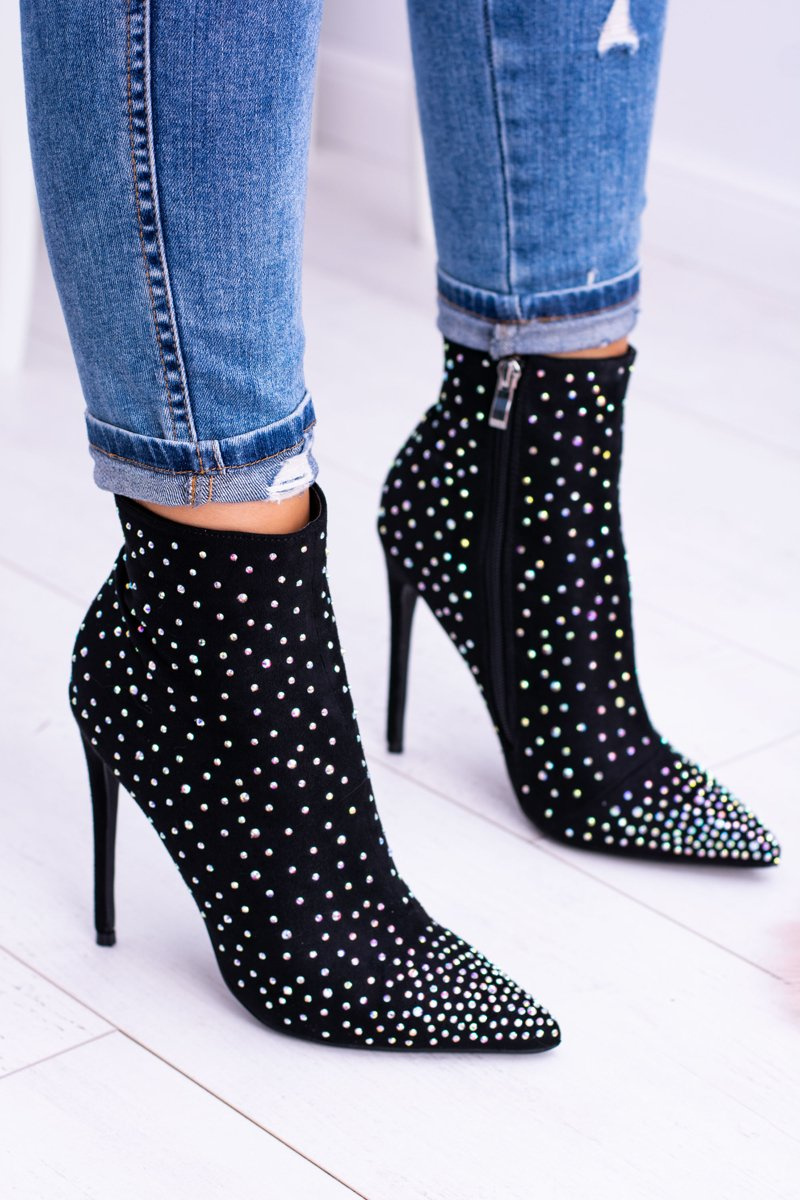 High boots do not have to be big and heavy. Our proposal is an elegant suede stiletto boots, which will complement autumn styling. The boots are extremely comfortable. They will work well for elegant styling. Additional decoration are zircons on the entire surface of the shoe. Do not wait any longer and buy now! When choosing the size, please follow the size chart.