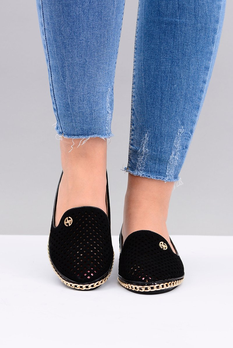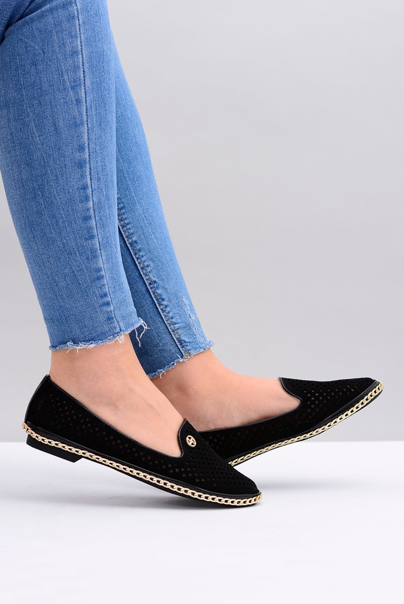 The latest model of heeled ballerinas straight from our favorite manufacturer Lu Boo! Slip-on type perfect for spring or summer season. They are very comfortable, soft insole made of ecological leather will provide the necessary comfort when walking. Very lightweight, they perfectly adhere to the foot. Additional features are openwork design and decoration in the form of a gold chain around the sole. Do not wait any longer, buy now at an excellent price!