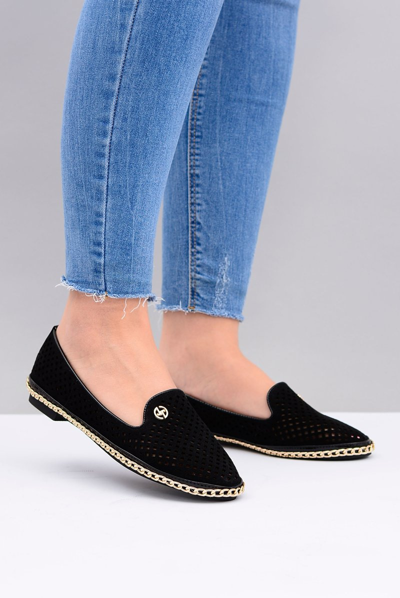 Lu Boo | Black Openwork Ballerina Lords Lace-ups Stylish
