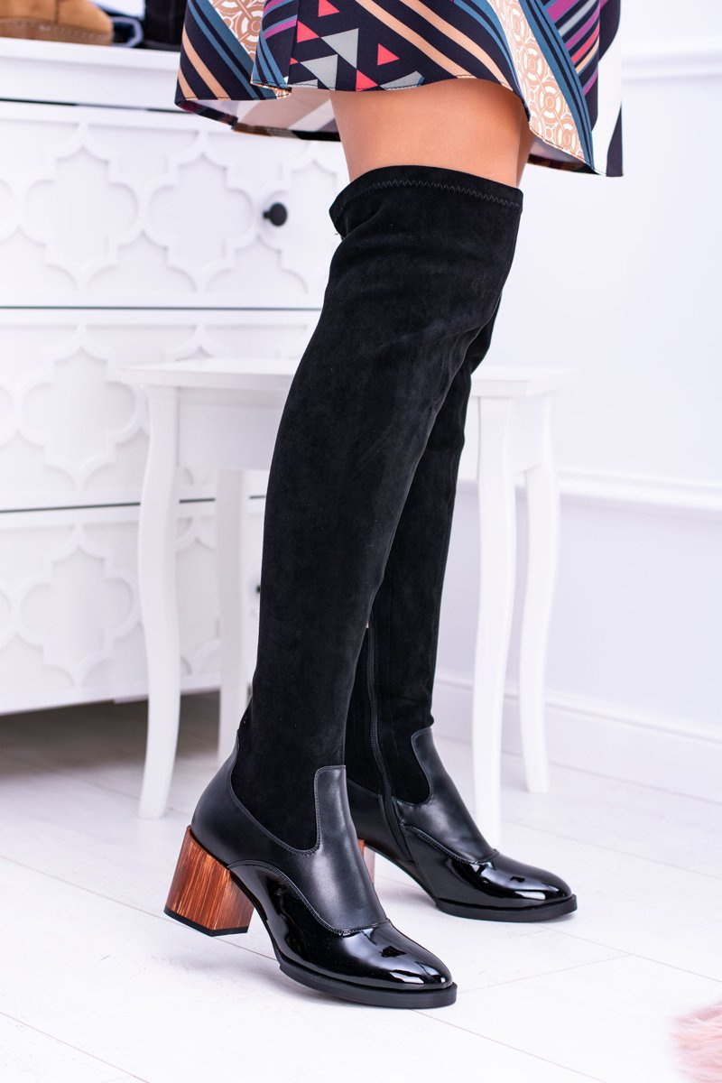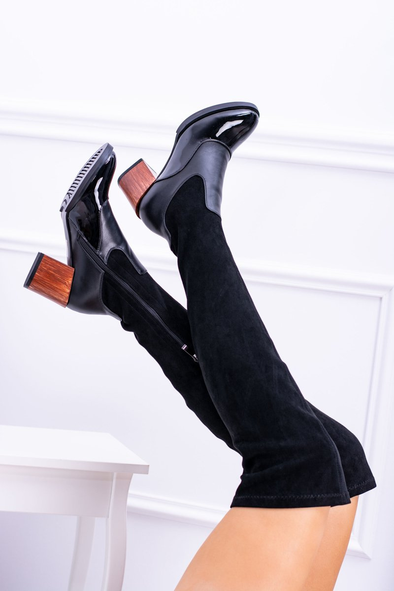 Elegant and timeless over-the-knee boots. Made of high quality eco-suede, which, combined with a lacquered nose and a wood-textured post, makes them an incredibly desirable model. Easy to put on thanks to the zipper sewn on the side. Top off your fabulous styling with our boots from Lu Boo and enjoy another new pair of shoes at an amazing price!