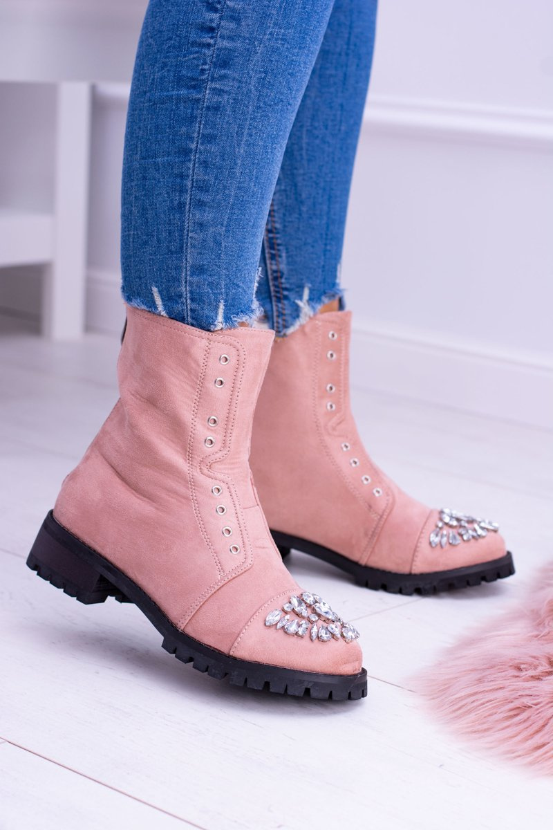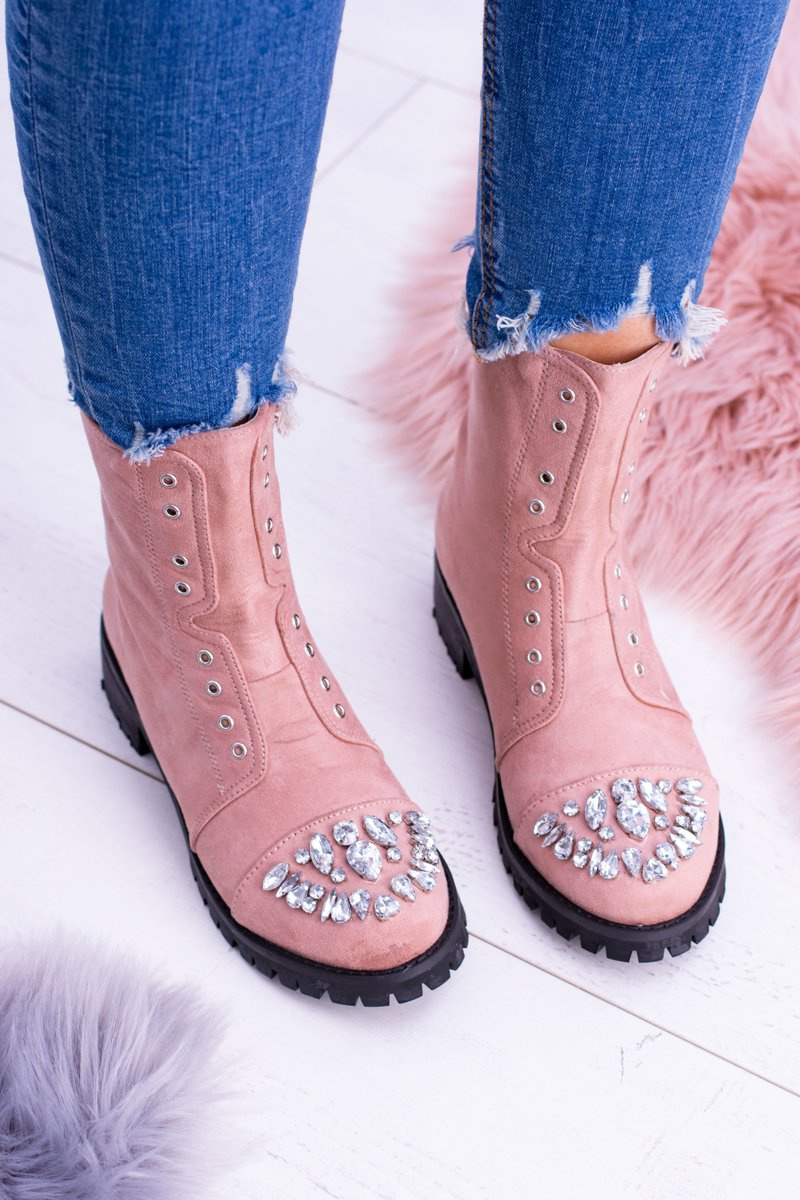 Lu Boo Women's Ankle Booties with Zirconia Powder Pink Carrie