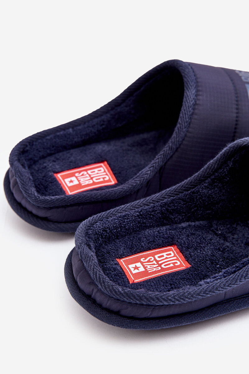 Men's, slip-on slippers with a wider toe will ensure comfort during use. Slippers made of textile material with stitching. On top there is the Big Star logo. The slippers were insulated inside with a soft blanket. Set on a sole made of rubber material, which perfectly isolates from the cold ground. When choosing a size, please use the size chart.