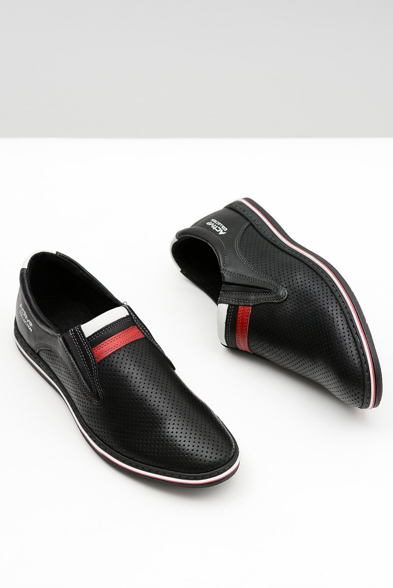 Men's Leather Slip-on Black Mello Hole Half Boots