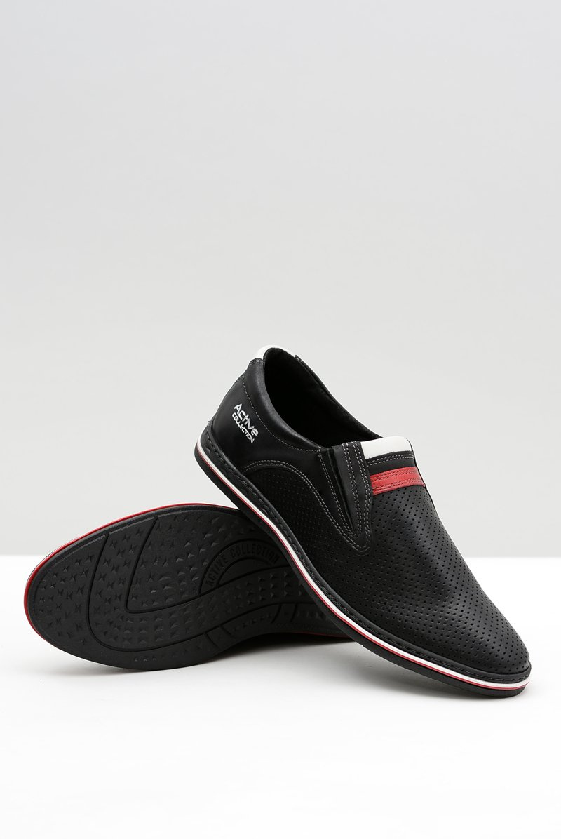 Great men's leather Polish half shoes, is a guarantee of quality and comfort thanks to the leather insole and handmade. Slip-on model with imitation holes will perfectly fit into delicate styling, both sporty and more elegant. Fit to the foot will ensure sewn on the sides of the rubber bands. Available in several colors!