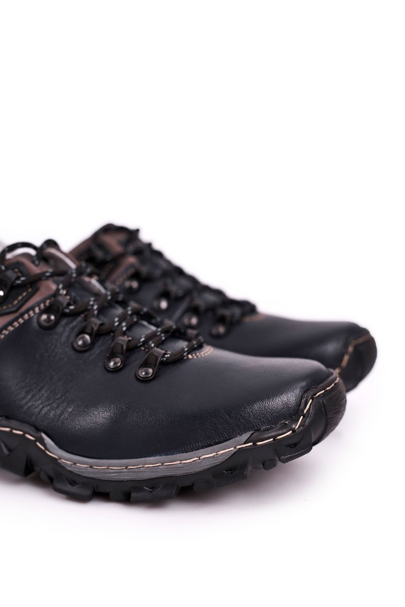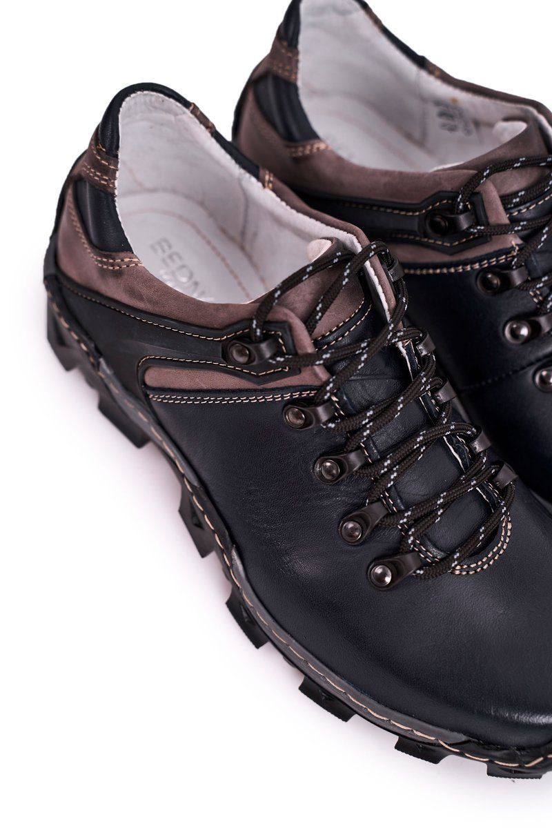 Men's Leather Trekking Half Shoes BEDNAREK Navy Blue