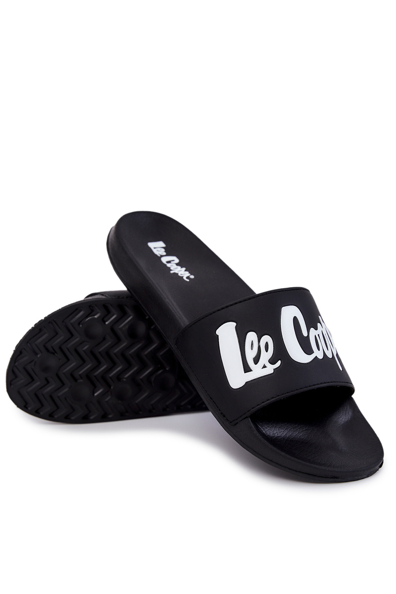 Comfortable and very light men's slippers from the Lee Cooper brand. The upper is made of eco leather with the brand's logo, while the insole and the sole are made of plastic. Designed for comfortable use on summer days. The slippers fit well to the shape of the foot. The insole of these slip-on shoes is profiled and abrasion-resistant. A perfect model for everyday use, for a swimming pool or for a walk on a sandy beach. When choosing a size, please use the size chart.