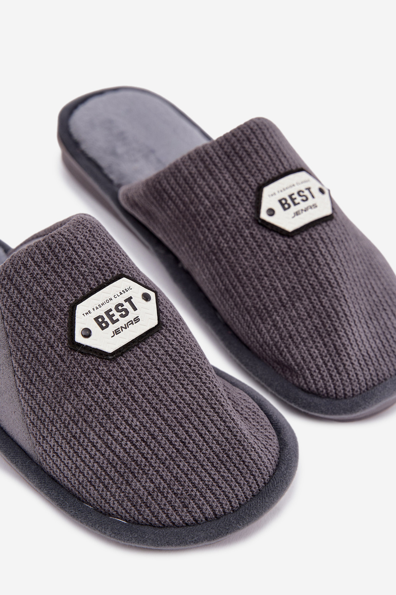 Men's slippers made of soft fabric are a comfortable model perfect for everyday use at home. They feature closed, wide toes that provide freedom and comfort. The front is decorated with a badge. This model has a soft fur-lined insole that guarantees warmth and comfort with every step. Great choice for relaxing at home. When choosing size, please refer to the size chart. When choosing a size, please refer to the size chart.
