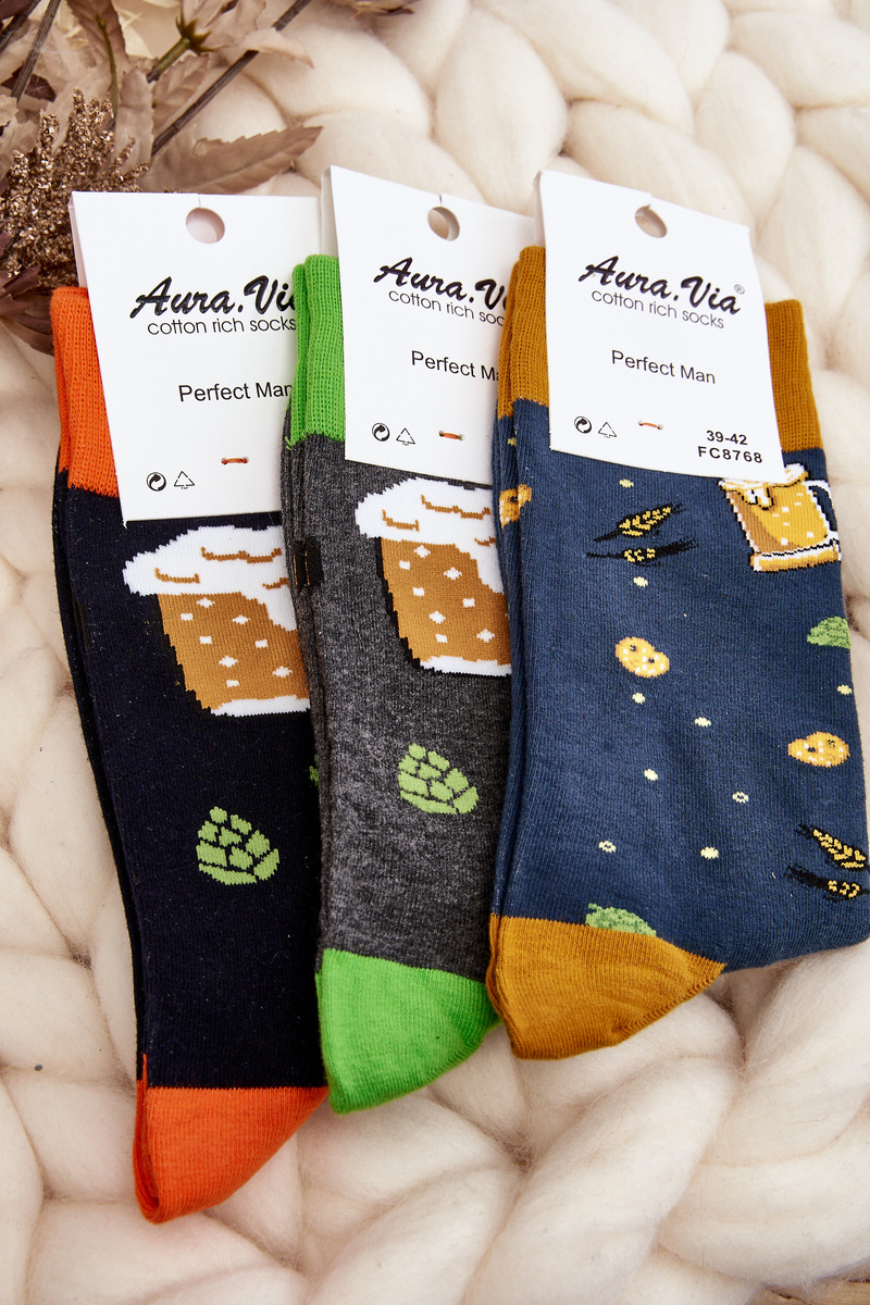 Funny men's socks are mainly made of cotton. Interesting patterns and colors make them a perfect gift for a loved one! The elastic cuff allows the socks to fit properly to the leg's circumference.