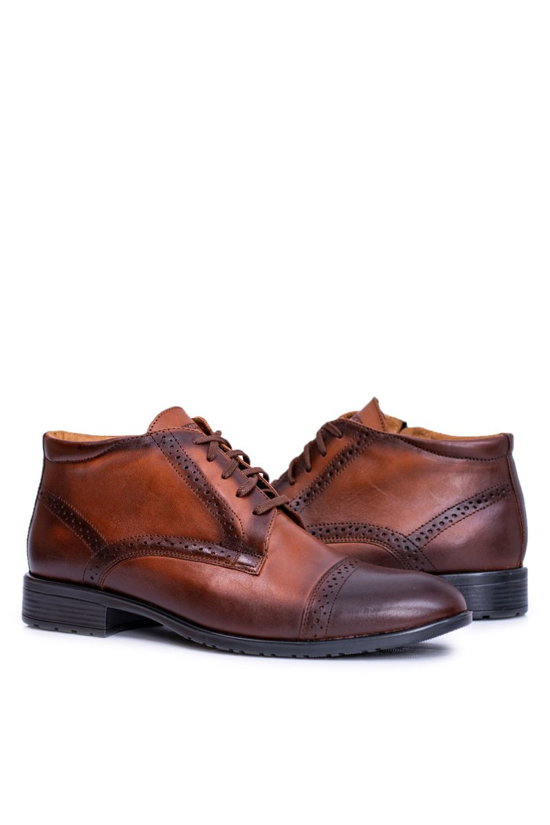 Men's Warmed Boots Polish Leather Sneakers Cognac Columbs