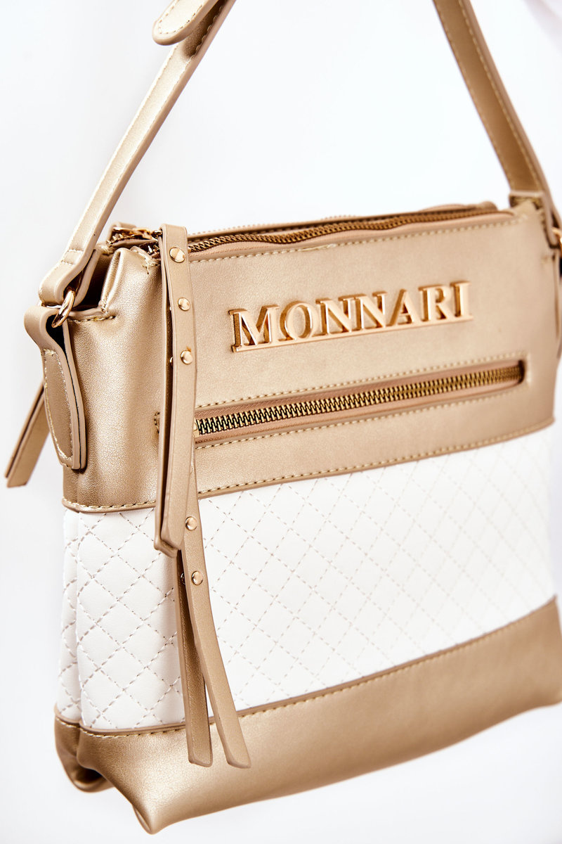A women's handbag made of eco leather with quilting. It has a magnet-closed compartment with two open pockets and one closed with a zipper. Additionally, there are two zipped pockets on the side of the chamber. Decorative Monnari logo on the front and a pocket with a zipper closure. The bag has an adjustable, non-detachable strap. Perfect for work or a trip. A classic model that you should have in your wardrobe!