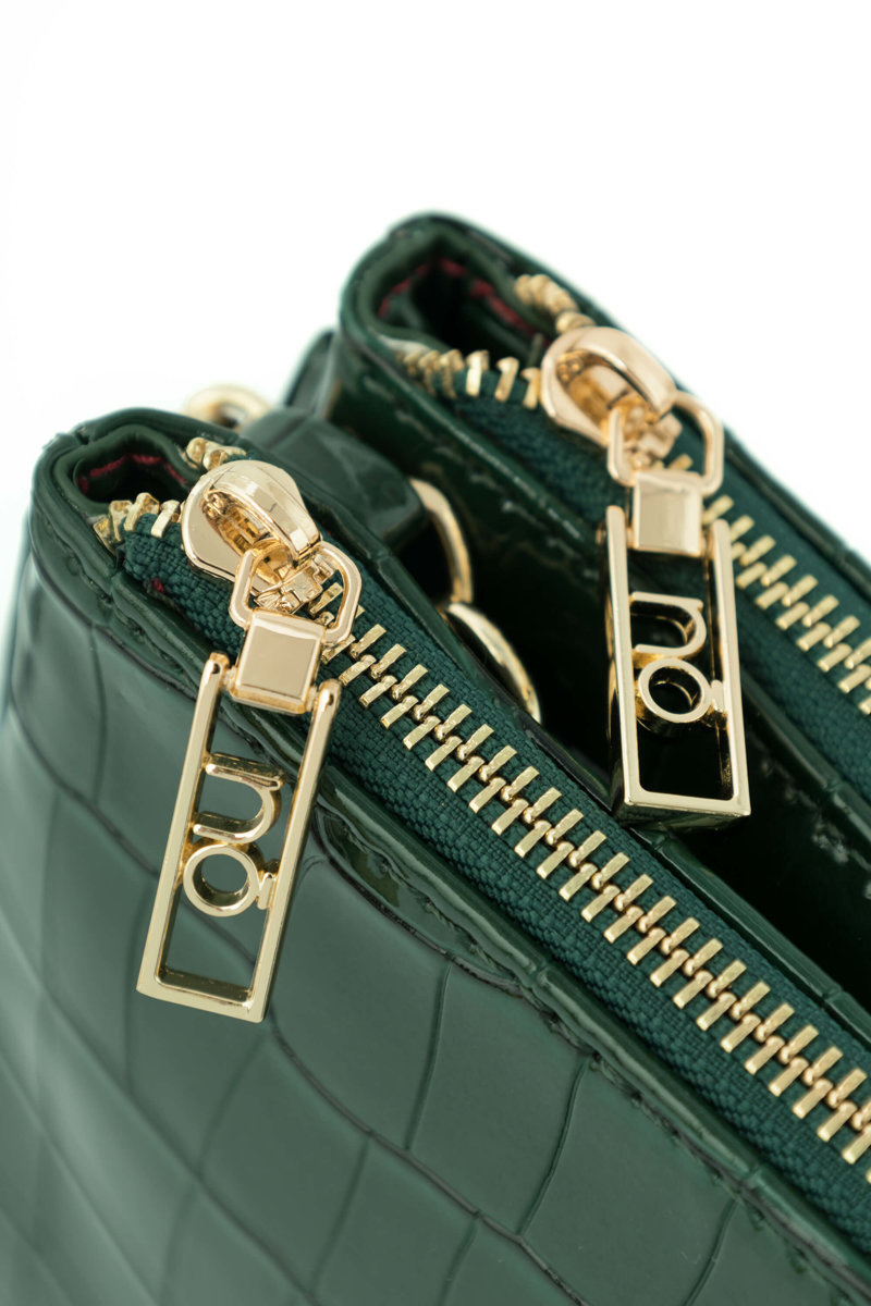 The NOBO women's handbag is made of high-quality material. On the front there is the NOBO brand logo. The bag has two compartments that are closed with a zipper. In the middle of one chamber there is a zippered pocket, while in the other there is an open pouch . The bag has a decorative, non-detachable chain. Between the chambers there is a hidden pocket with a latch.