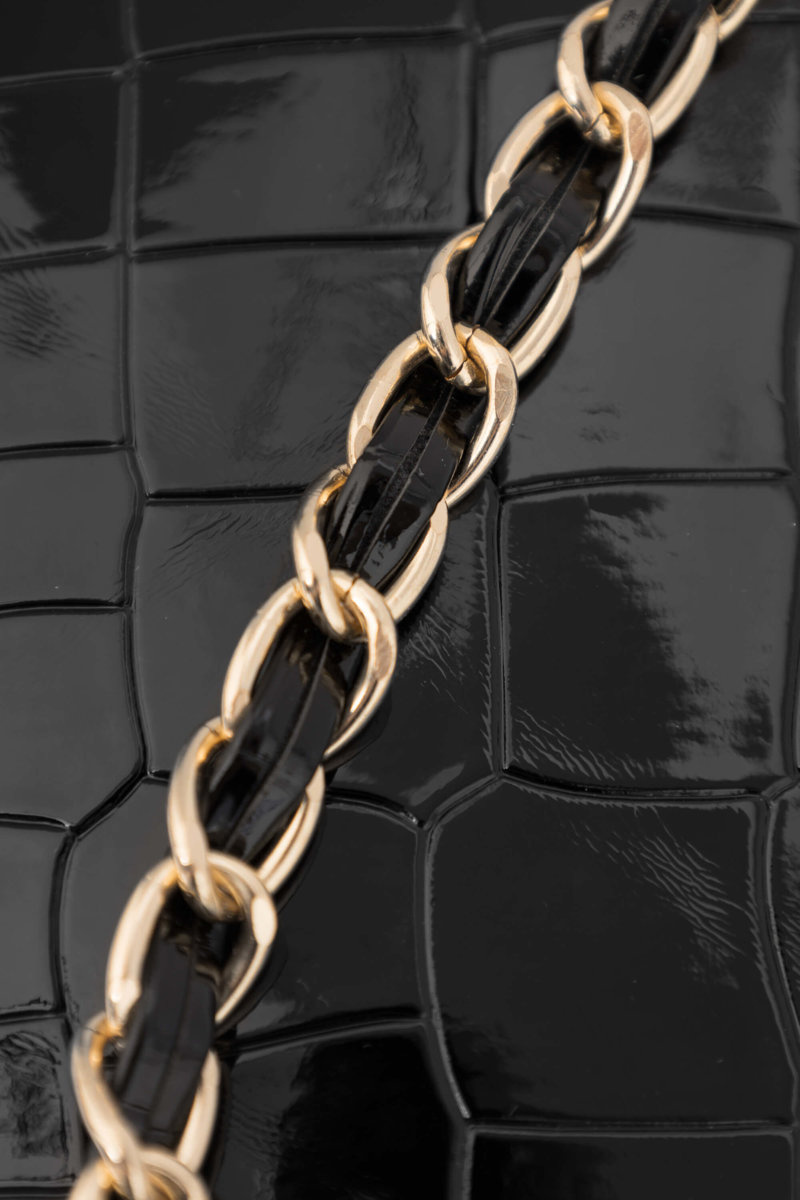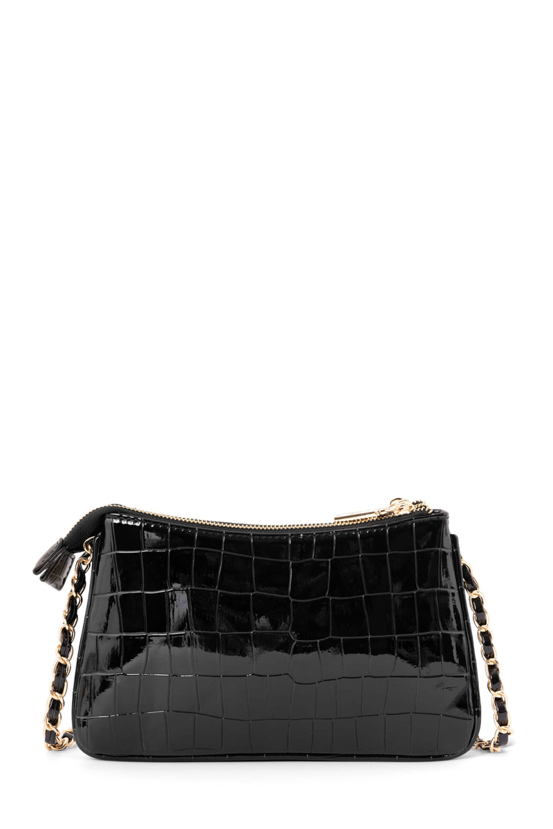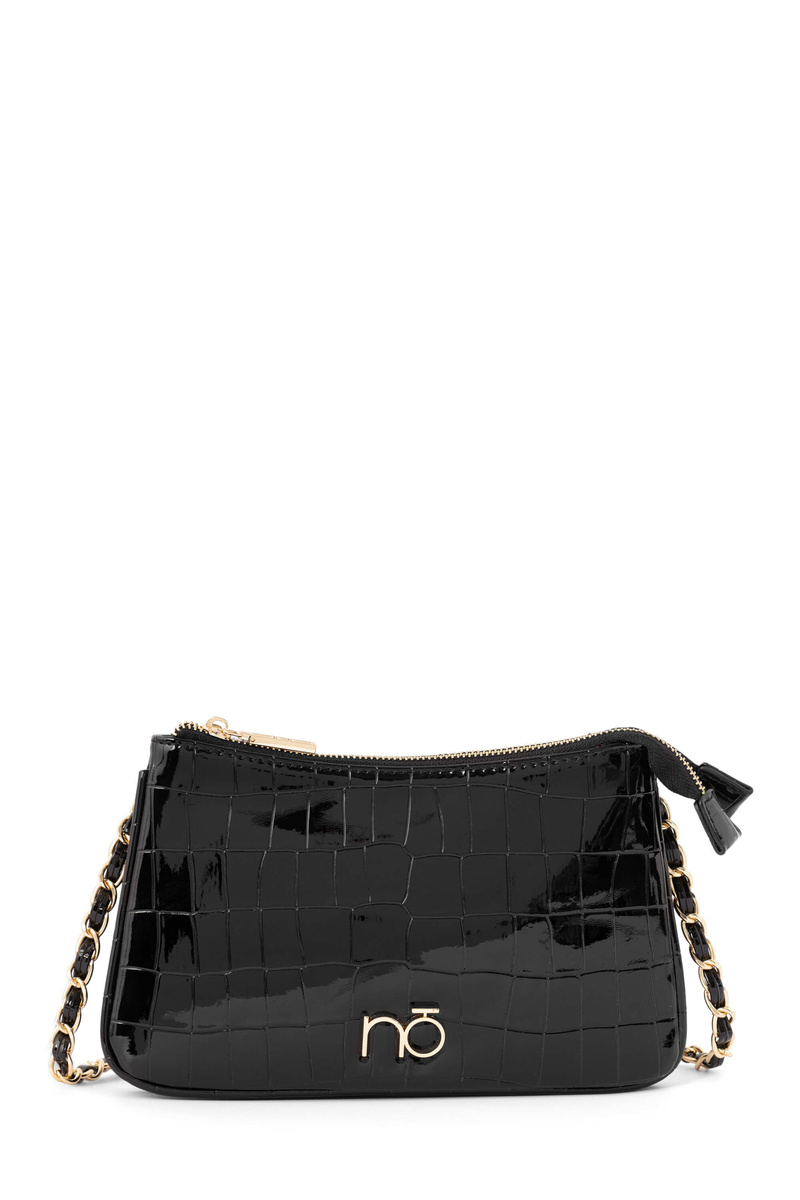 The NOBO women's handbag is made of high-quality material. On the front there is the NOBO brand logo. The bag has two compartments that are closed with a zipper. In the middle of one chamber there is a zippered pocket, while in the other there is an open pouch . The bag has a decorative, non-detachable chain. Between the chambers there is a hidden pocket with a latch.