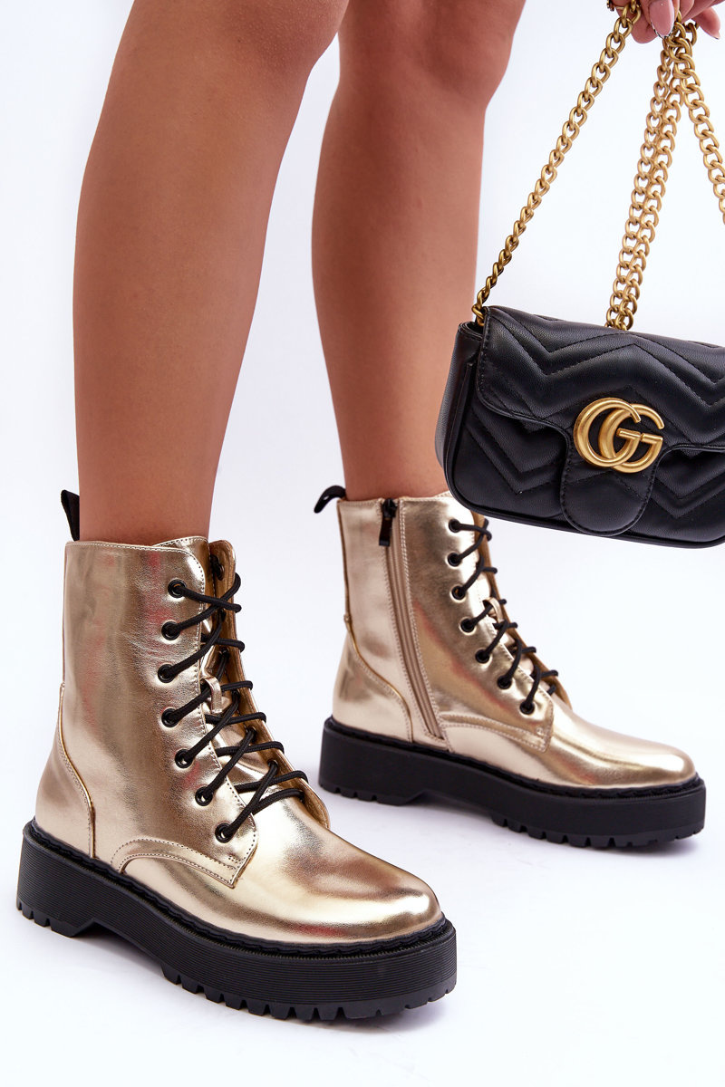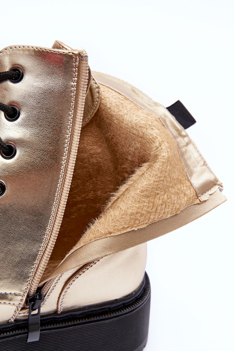 Fashionable women's boots were made of eco leather. Flat heel and platform will provide stability with every step. They are zipped on the side of the upper with a zipper and additionally laced. The toe of this shoe is reinforced. Insulated with a shoe liner. Great model for autumn and winter outfits! When choosing a size, please refer to the size chart.