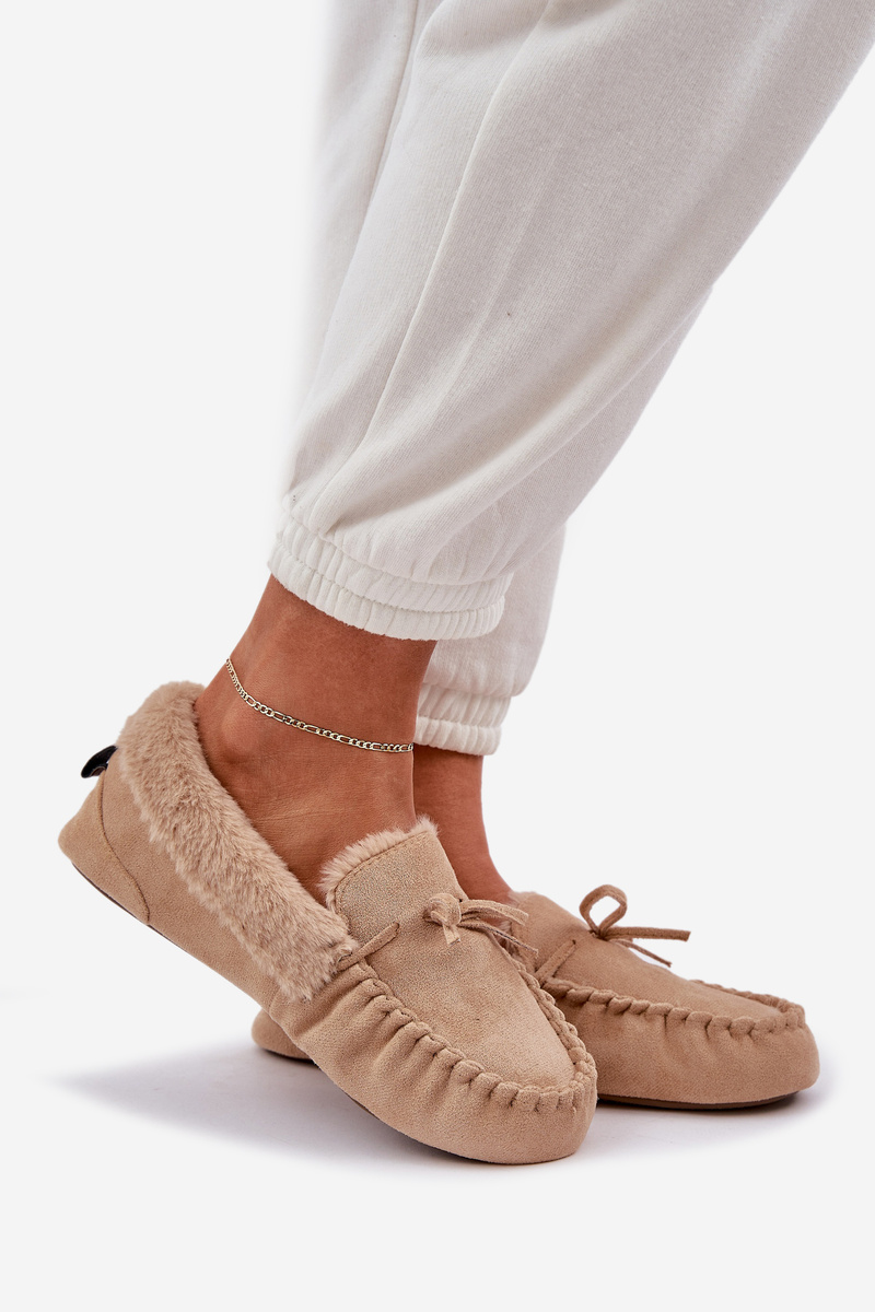 Moccasin slippers made of eco suede are a unique proposition for cooler days, combining comfort and warmth. Made of soft eco suede, they guarantee comfort while wearing, and the fur-lined interior provides pleasant warmth and softness. Their classic moccasin shape makes them not only functional but also stylish. When choosing a size, please refer to the size chart.