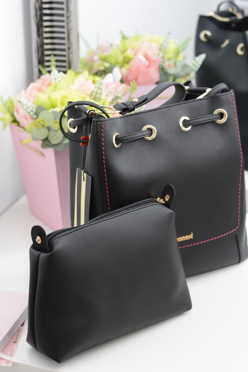 Made of eco leather bag for women, medium size(29/28/16cm). The bag hangs on a handle with a jewelry buckle and a strap. On the front, a jewelry plate with the Monnari brand logo and expressive stitching. The bag with drawstring straps, zippered closure, smooth interior. It comes with a small cosmetic bag, which can be used separately or pinned inside the bag as an additional pocket. We recommend this model as an addition to your urban styling.