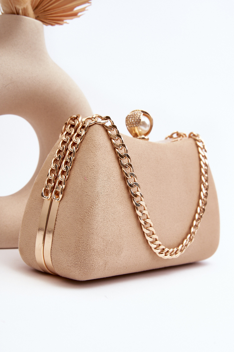 Mała torebka wizytowa wykonana z eko zamszu. Idealna do wieczorowych i koktajlowych stylizacji! Zapinana na ozdobny zatrzask. Model ten posiada dodatkowy łańcuszek.