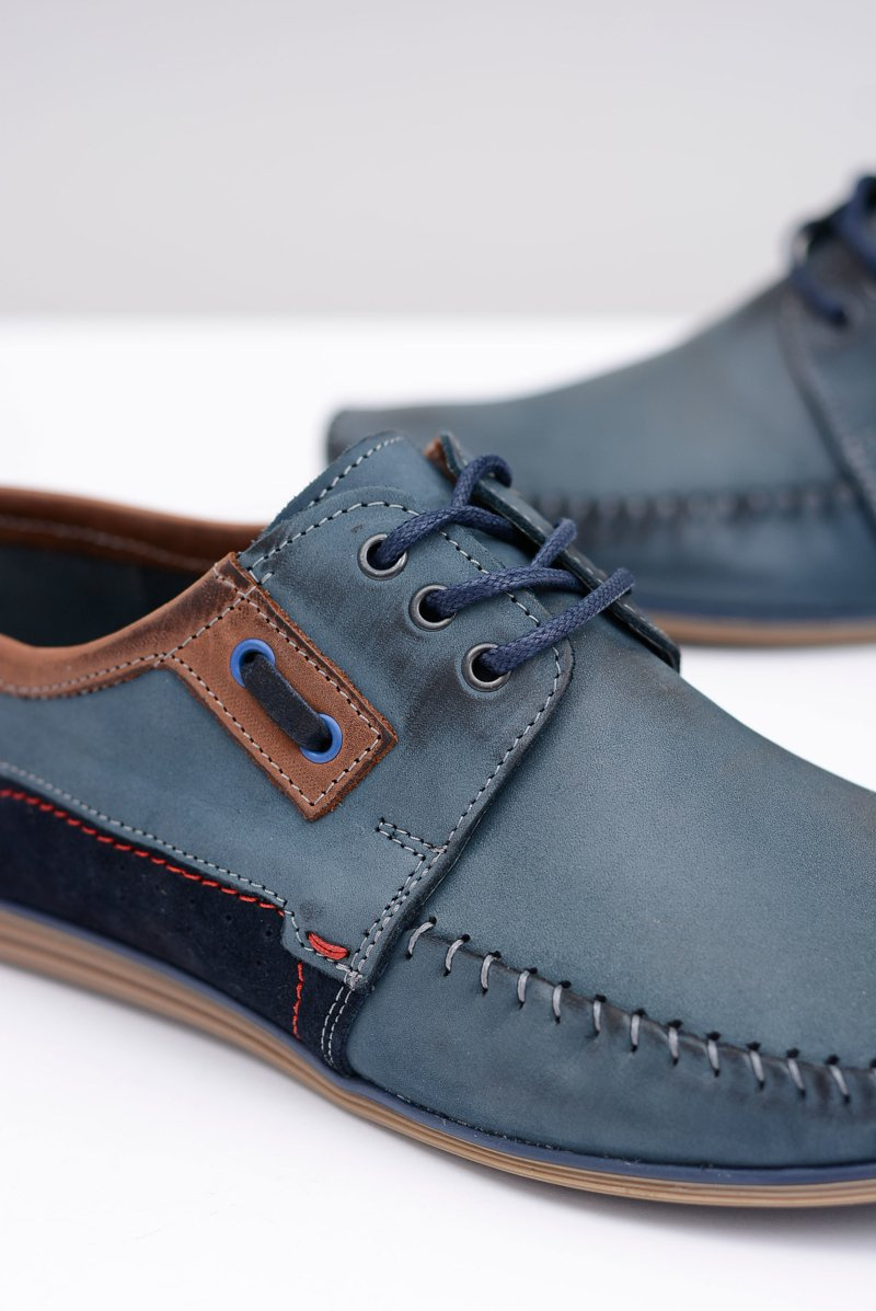 Navy Blue Lace-up Polish Leather Men's Mokassins Teodoro
