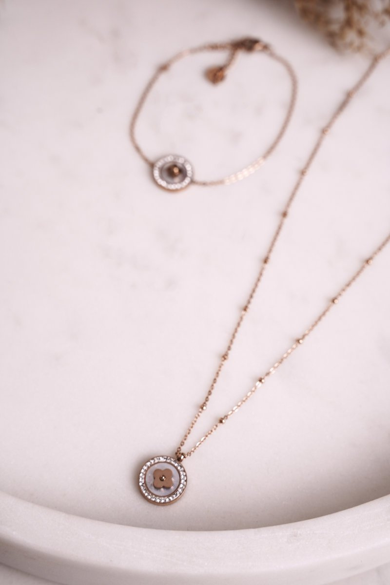 Necklace with Clover and Cubic Zirconia Rose Gold Luck