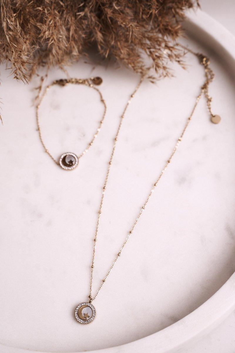 Necklace with Moon and Star Gold Universe